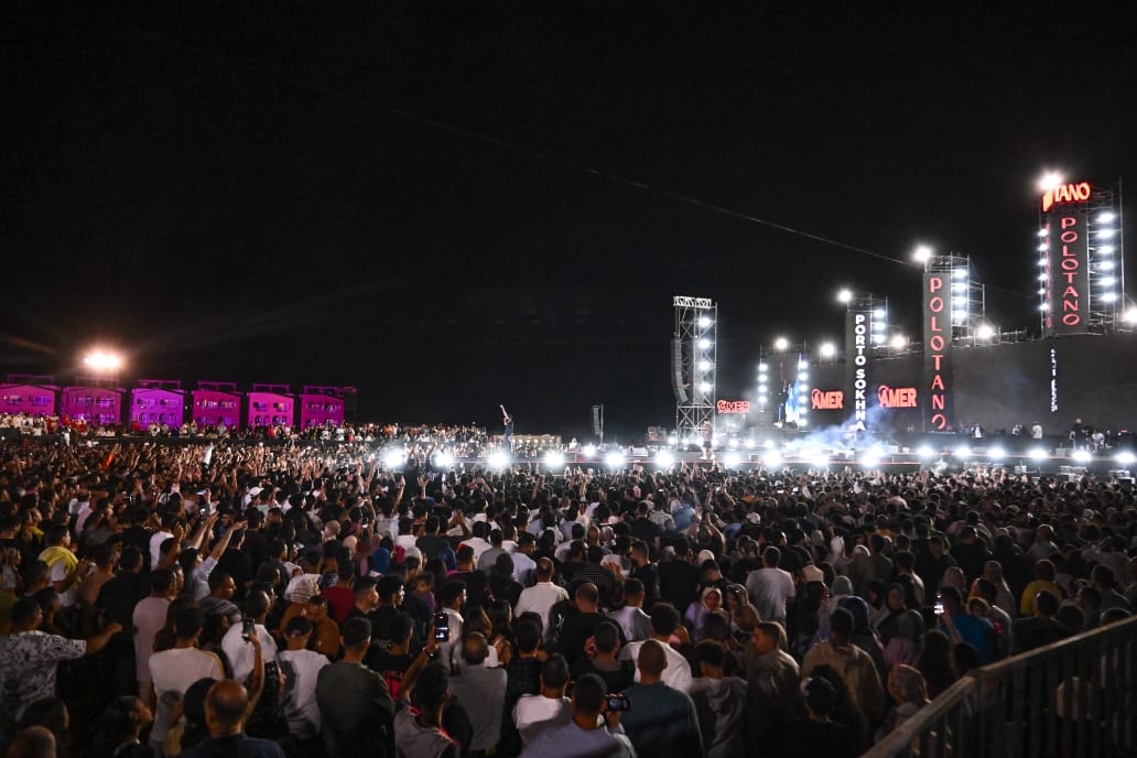 أحيا الفنان تامر حسني وعفروتو حفلا غنائيا داخل بولوتانو ببورتو السخنة ، حيث ظهر تفاعل الجمهور مع الثنائي .