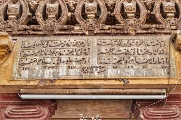 يوجد النص التأسيسي للقصر على لوح من الرخام أسفل شرفة الطابق الأول، ويتضمن أبيات شعرية بالخط الفارسي تشير إلى تاريخ الإنشاء وهو سنة 1333 هجرية (1914 م).