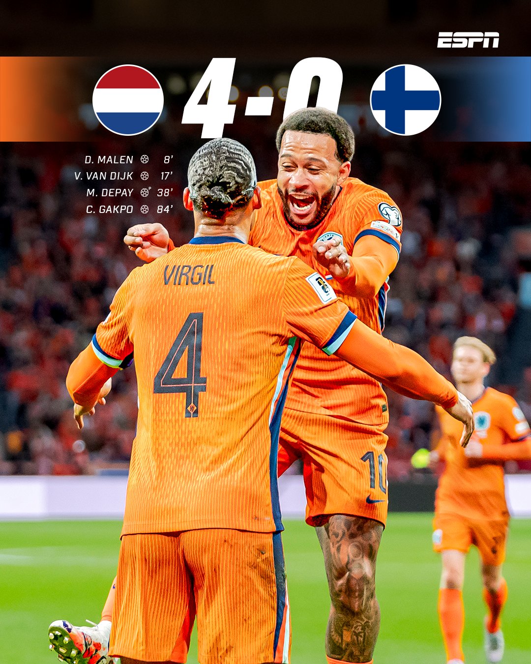 بتلك النتيجة رفع منتخب هولندا بقيادة مدربه رونالد كومان رصيده إلى 16 نقطة في صدارته المجموعة السابعة، ممن 5 انتصارات مقابل تعادل واحد، في المقابل تعقدت مهمة المنتخب الفنلندي الذي تجمد رصيده في المركز الثالث عند 10 نقاط من 7 مباريات متساويا مع بولندا.