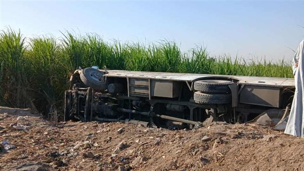 حصلت “نيوز رووم”علي أول صور لحادث موقع انقلاب أتوبيس عمال مصنع الألومنيوم بمدينع نجع حمادي، شمال قنا.