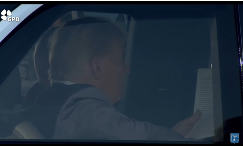 تسلّم الرئيس الأمريكي دونالد ترامب، اليوم الاثنين، ورقة غاضمة من رئيس وزراء الاحتلال الإسرائيلي بنيامين نتنياهو، أثناء حديث الثنائي في السيارة خلال مراسم استقبال رئيس الولايات المتحدة في مطار بن جورين.