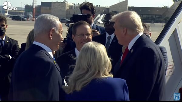 استقبل قادة الاحتلال الإسرائيلي، اليوم الإثنين، الرئيس الأمريكي دونالد ترامب، لحظة وصوله إلى مطار بن جوريون في تل أبيب، في زيارة رسمية تأتي في إطار دعم اتفاق وقف إطلاق النار وخطة السلام في قطاع غزة.