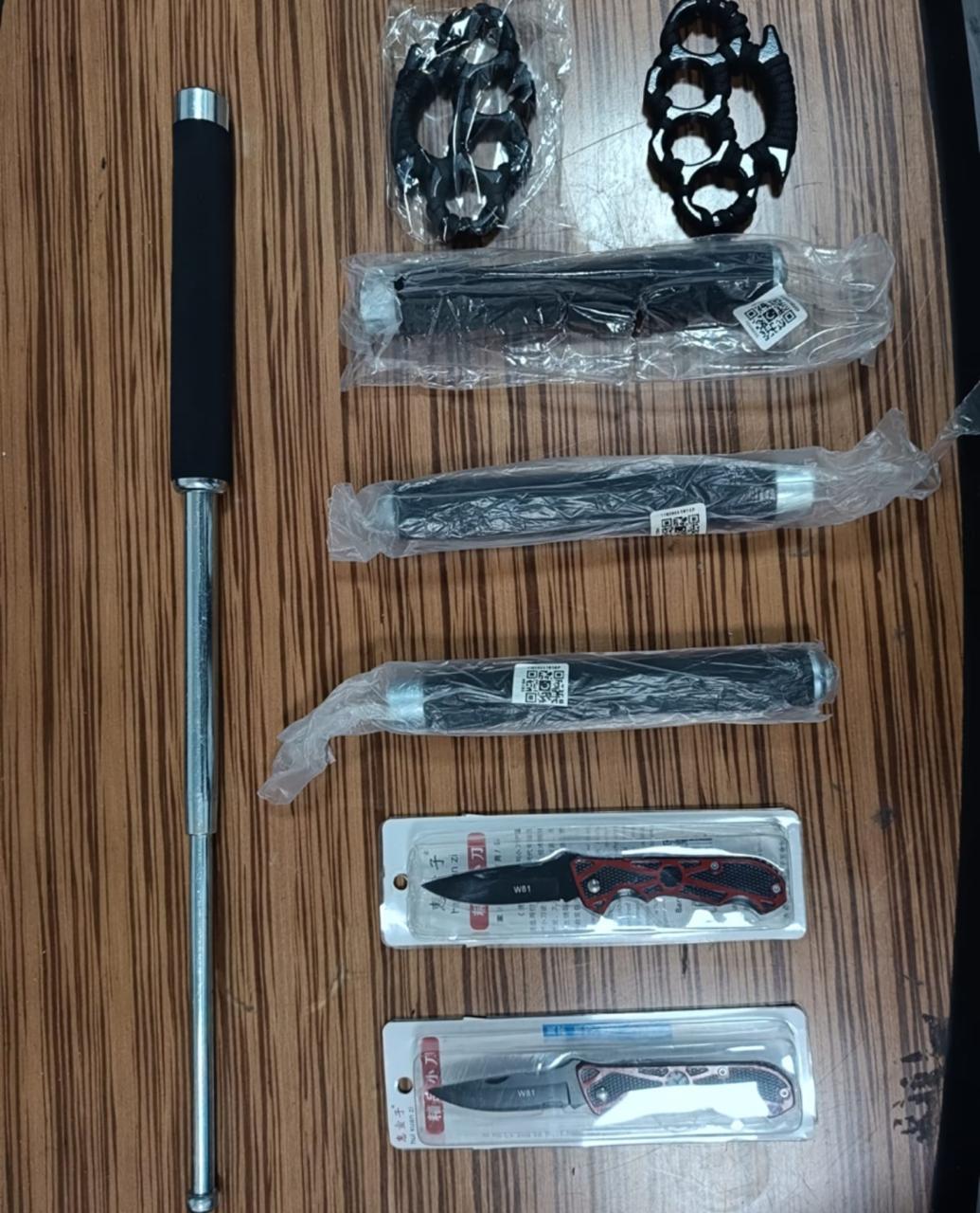 وفي محضر خامس، تم ضبط راكب مصري بحوزته 4 عصي حديدية، و2 قبضة حديدية، و2 مطواة، وهي محظورة طبقًا للقانون رقم 394 لسنة 1954، حسب تقرير إدارة الحماية المدنية، وشارك في الضبط عبد الحليم عبد المحسن، محمد فتح الله، محمد أشرف، محمد عبد العال، وهاني مصطفى، تحت إشراف إبراهيم عامر.