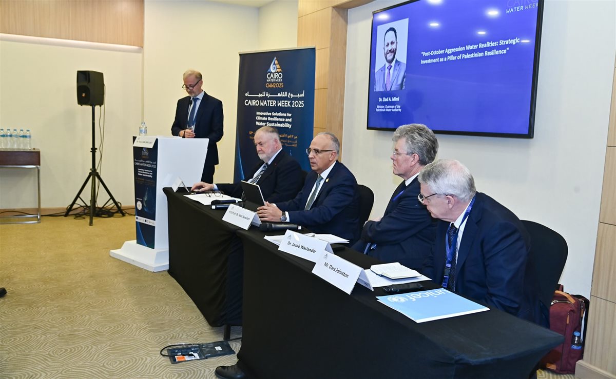 وأضاف سيادته أن عملية إعادة بناء قطاع المياه في فلسطين يجب أن تستند إلى ثلاث ركائز أساسية تتمثل فى الاستجابة الإنسانية العاجلة بإعادة الوصول إلى المياه الآمنة والصرف الصحي والنظافة كأولوية لإنقاذ الأرواح، والاستثمار الإستراتيجي بإعادة بناء منظومات مرنة مناخيًا ولامركزية، والتعاون الإقليمي بدمج فلسطين فى إطار إقليمي مشترك لأمن المياه.