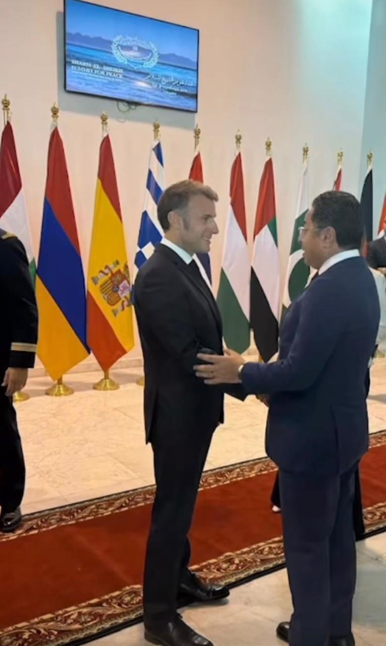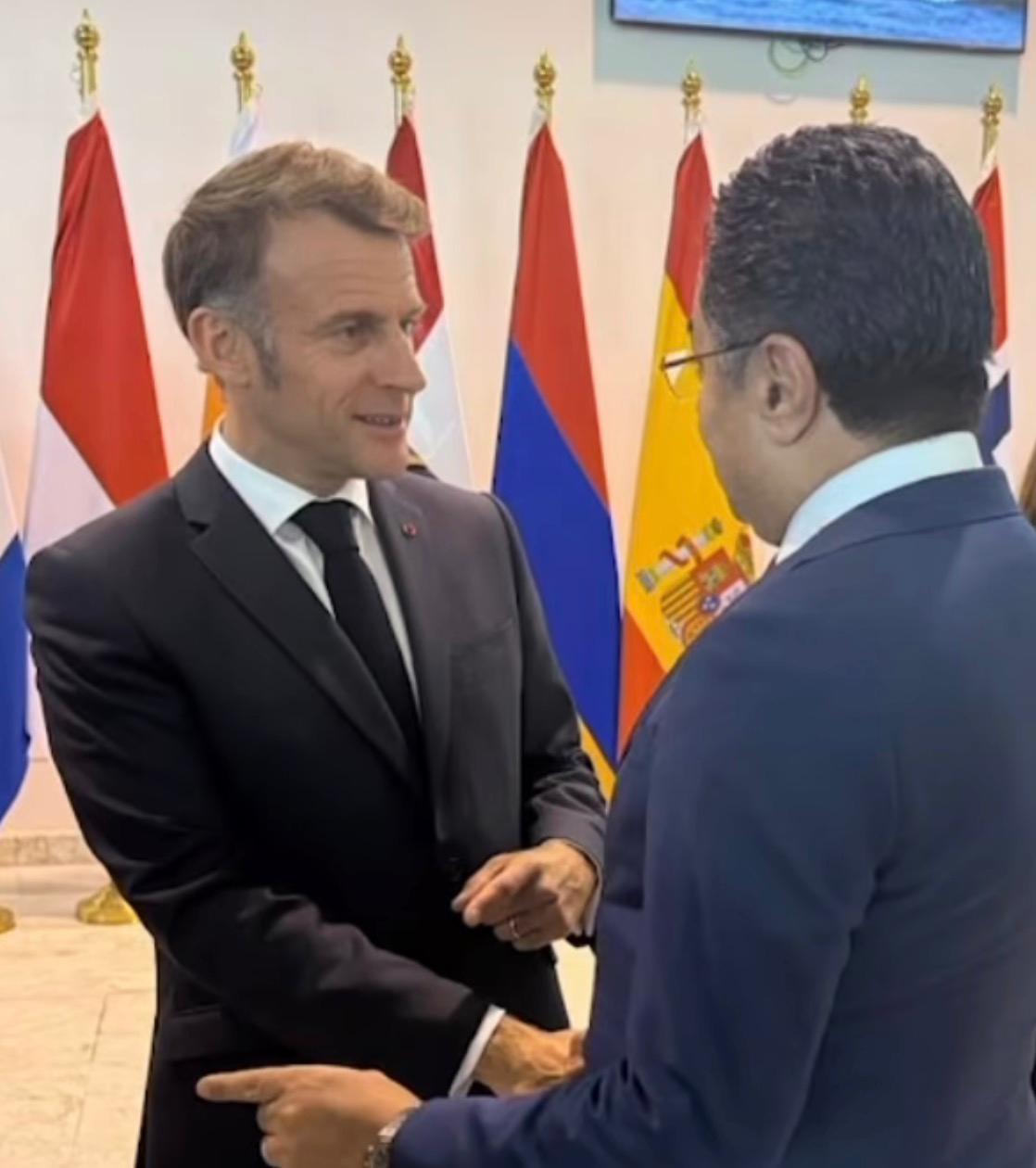 الإعلامي خالد أبو بكر يبادل الرئيس الفرنسي تحية حارة بقمة شرم الشيخ للسلام