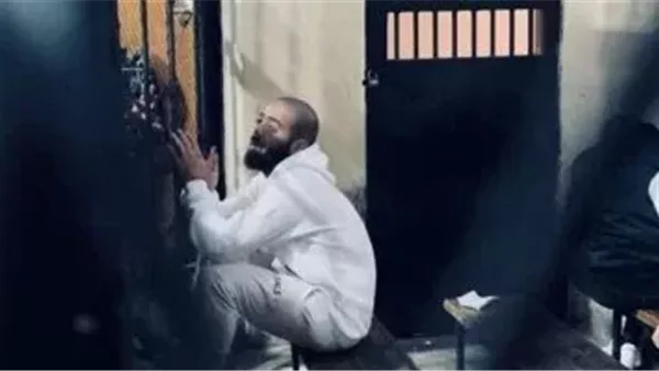 وظهر المتهم داخل القفص مرتديًا البدلة الحمراء، شارد الذهن، واضعًا يديه على رأسه، يحدّق في سقف القاعة وكأنه يفتش عن أمل بعيد.