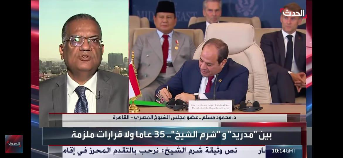 مسلم: اتفاق شرم الشيخ يختلف جذريًا عن مدريد.. ونجاحه مرهون بالحوار الفلسطيني