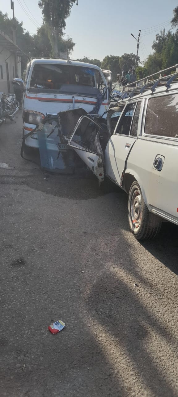 وتلقي مدير امن قنا إخطارا من غرفة العمليات، يفيد وقوع حادث تصادم سيارة سيرفيس وسيارة بيجو بالقرب من كافتيريا الشقيفي بطريق نجع حمادي - أبوتشت الزراعي شمال محافظة قنا.