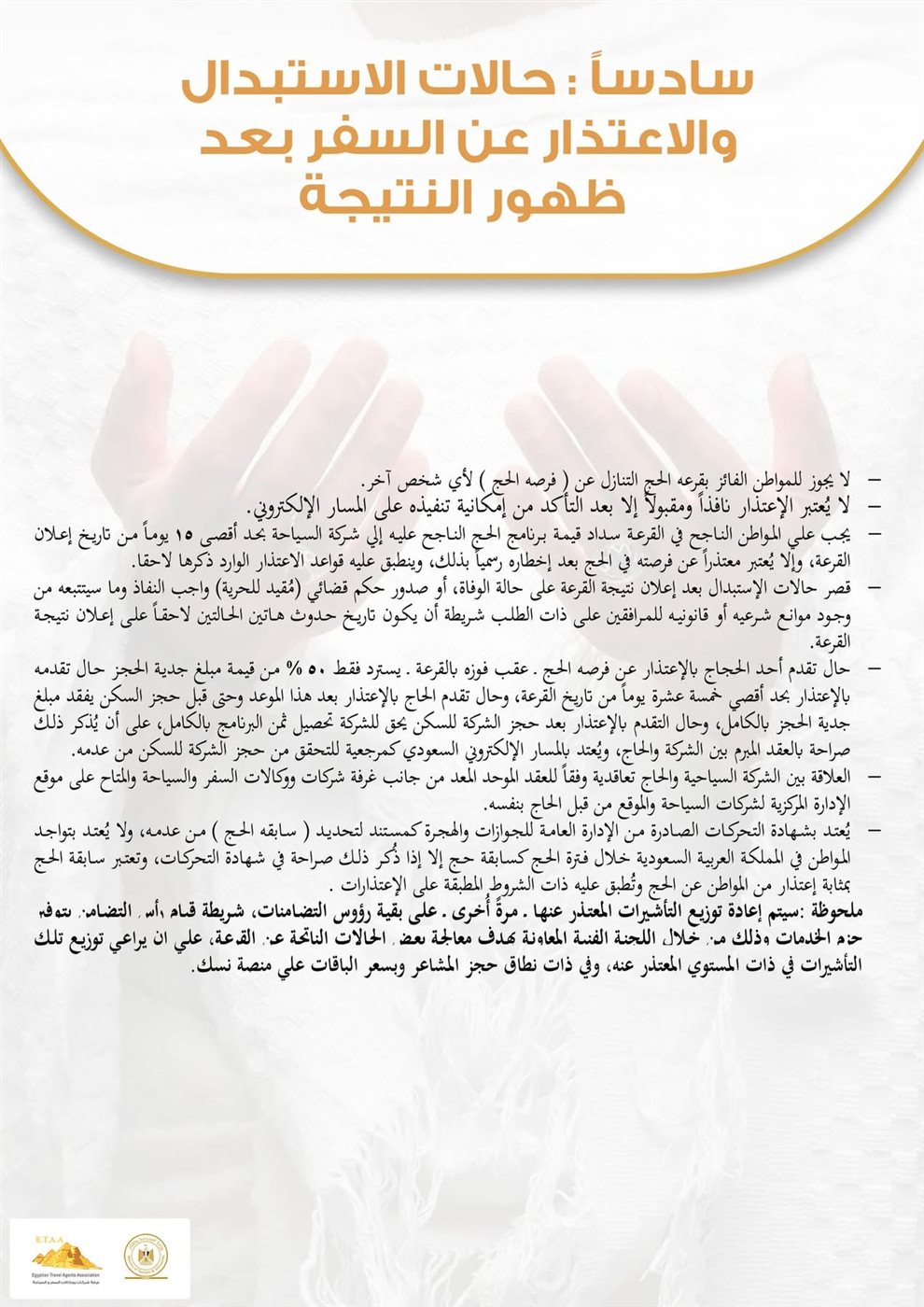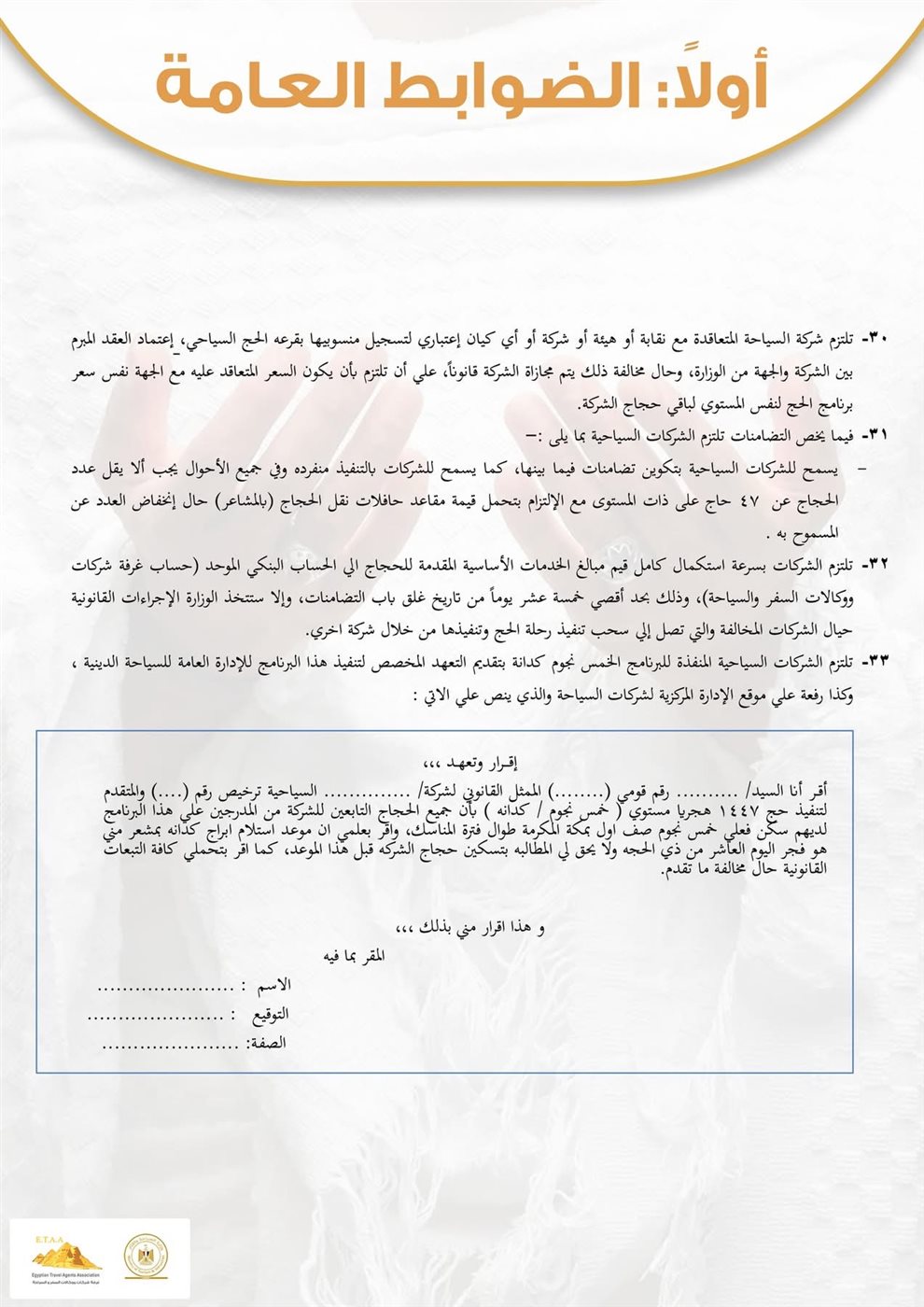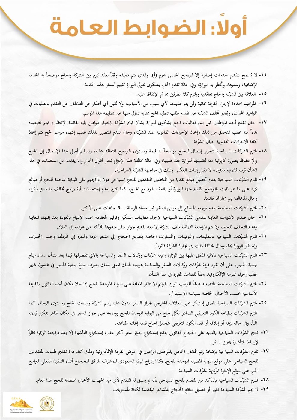 وننشر نسخة من الضوابط التى اعلنتها الوزارة والتى تعمل على رفع وتعزيز كفاءة منظومة الحج السياحي والسعي لتطويرها على نحو متكامل.