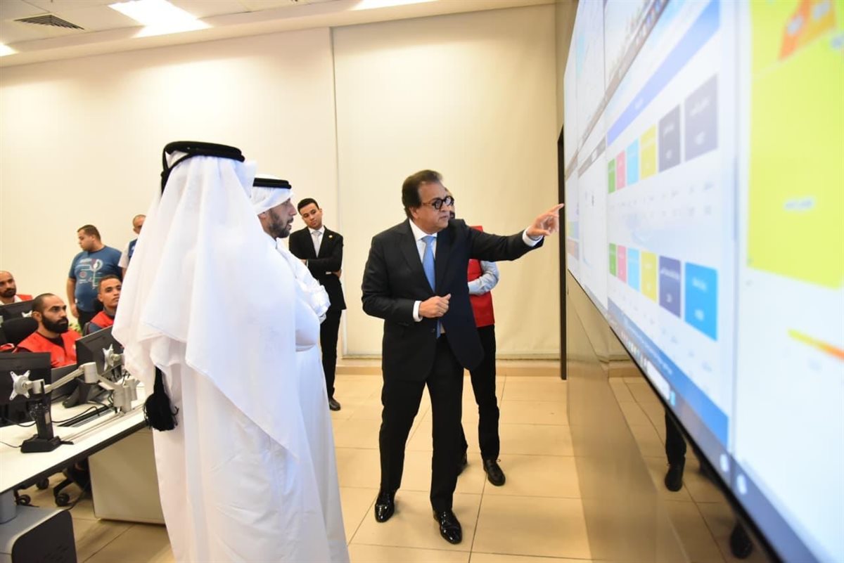 وحرص الدكتور "خالد عبد الغفار"، على اصطحاب الوفد القطري لغرفة التحكم المركزية بالعاصمة الإدارية، لاستعراض لوحات العرض الخاصة بالوافدين من غزة، المواليد والوفيات، المبادرات الرئاسية، والخريطة التفاعلية.