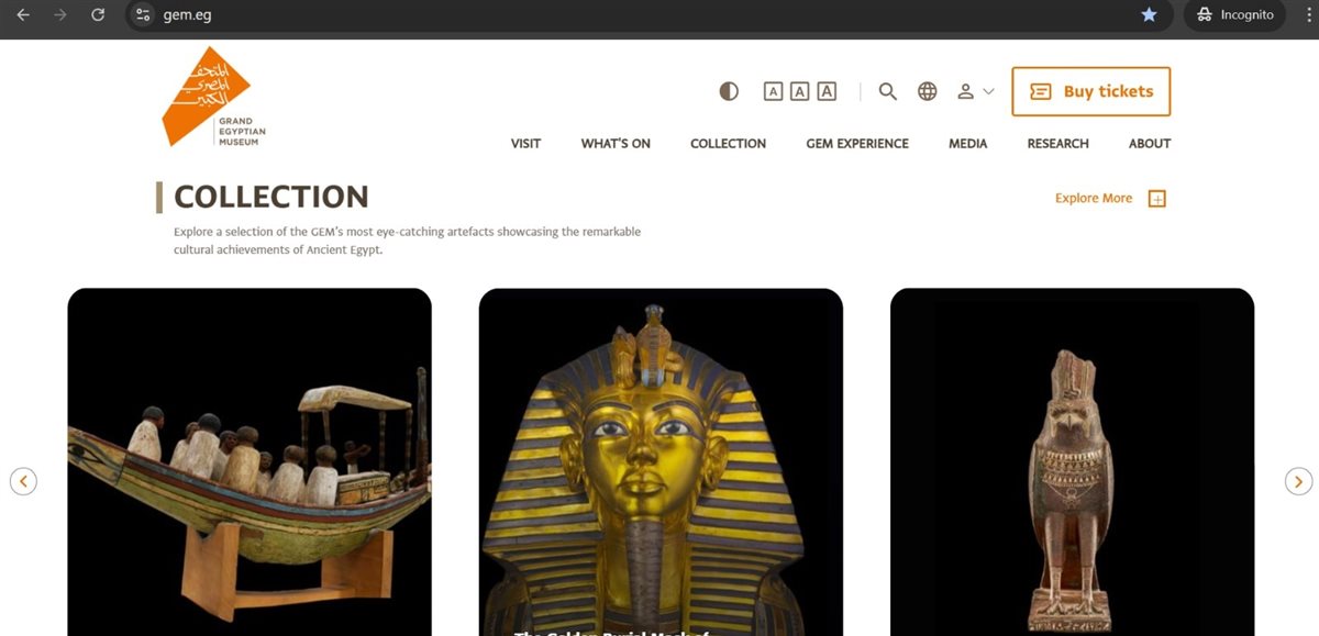 وأنه يمكن للمستخدمين تصفح الموقع الإلكتروني للمتحف من خلال الرابط التالي: https://gem.eg