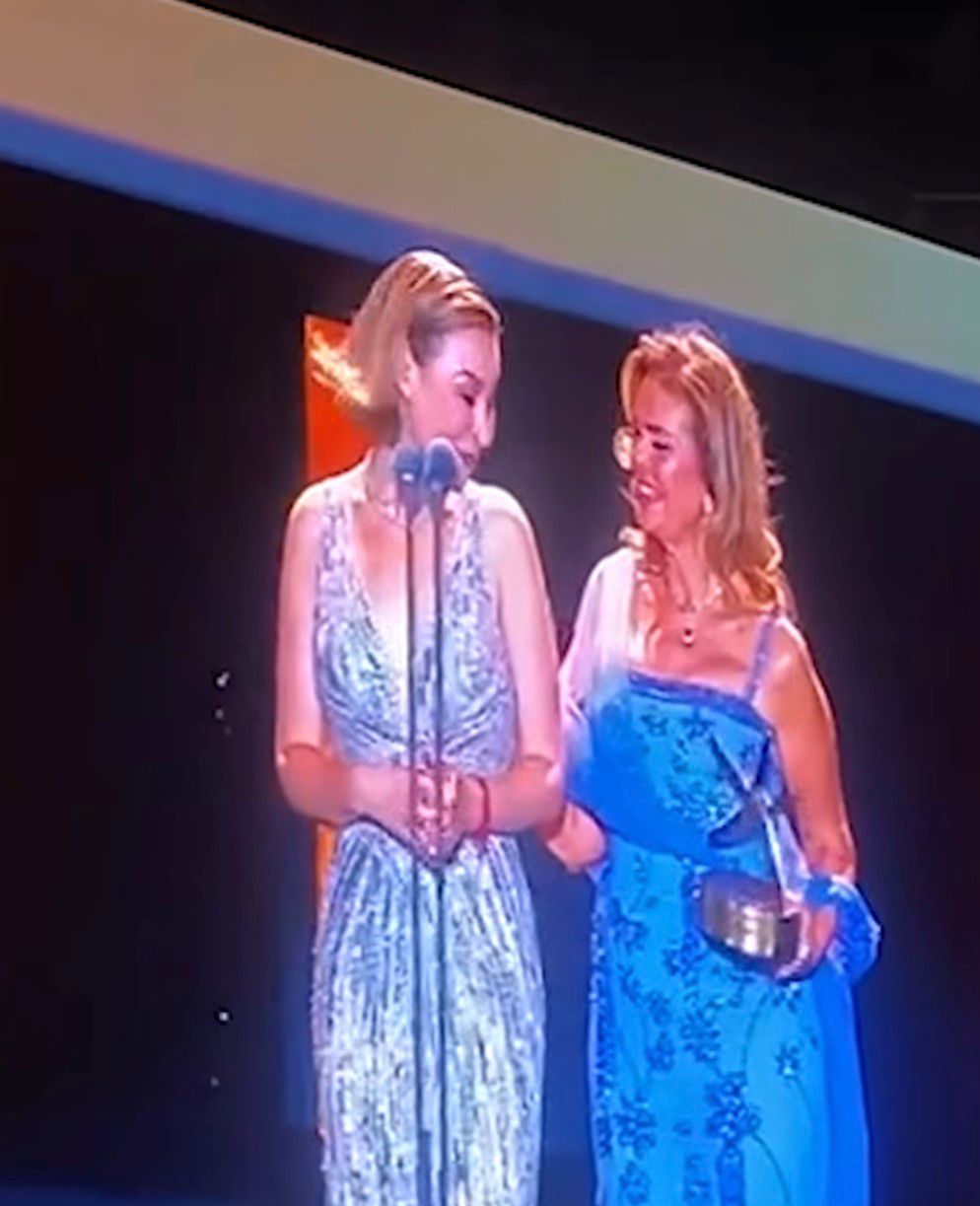 وقالت إنها وضعت الجائزة على صدرها لتتجنب الموقف المحرج، قبل أن يتدخل أحد أعضاء لجنة التحكيم ويخلع سترته ليغطيها بها، مؤكدة أنها لن تنسى هذا الموقف ما دامت حية.