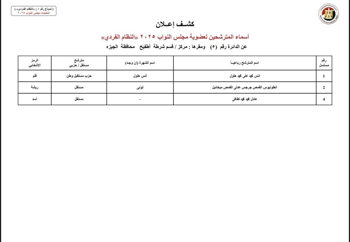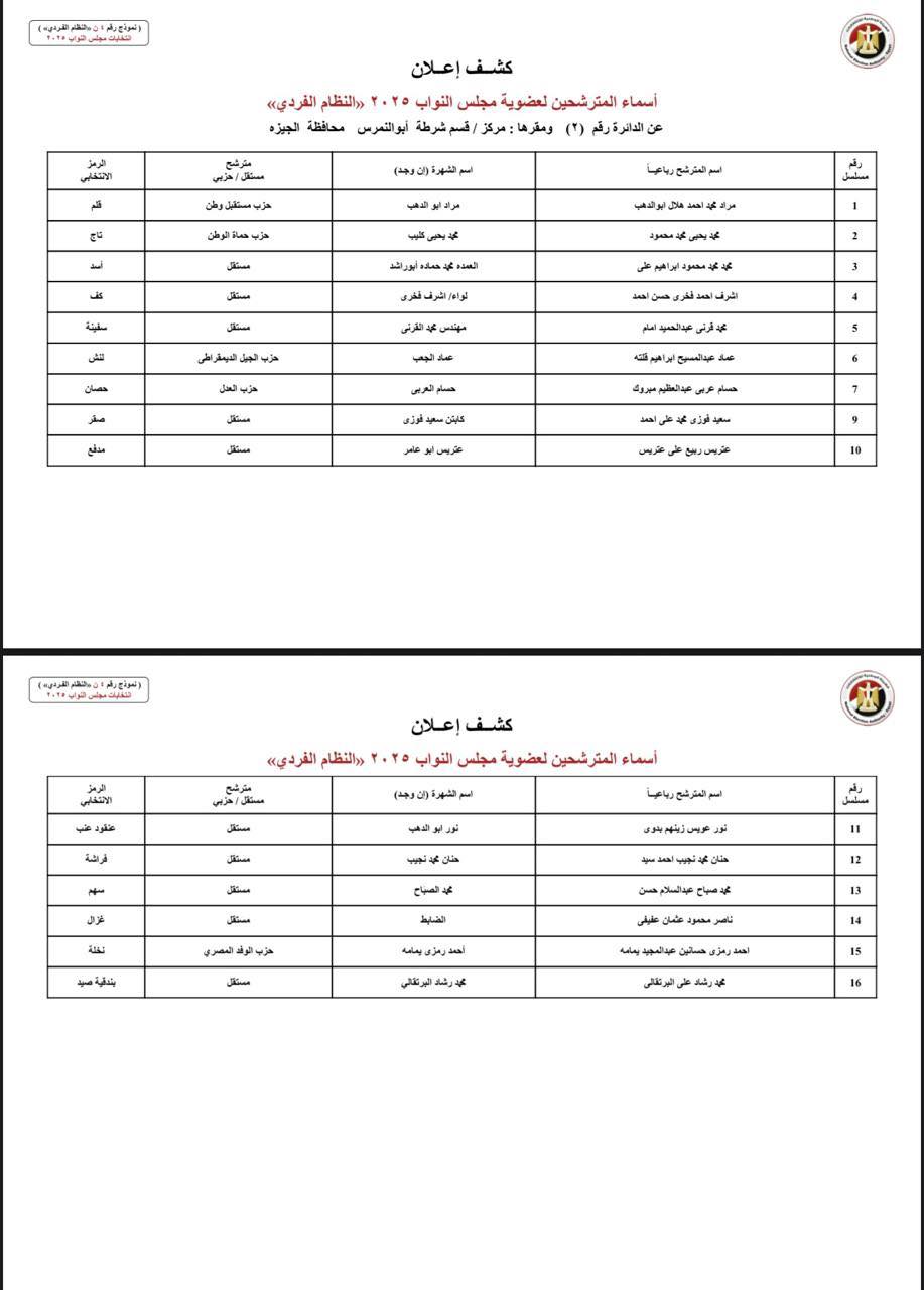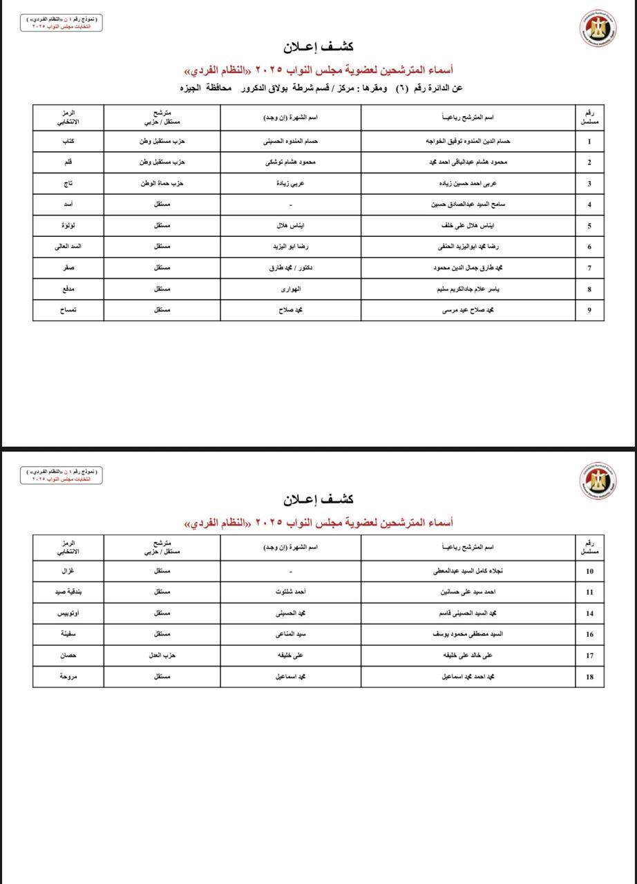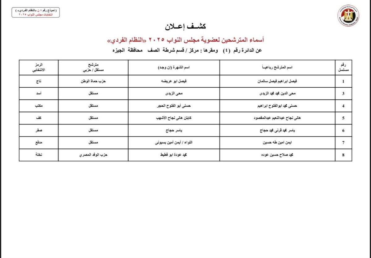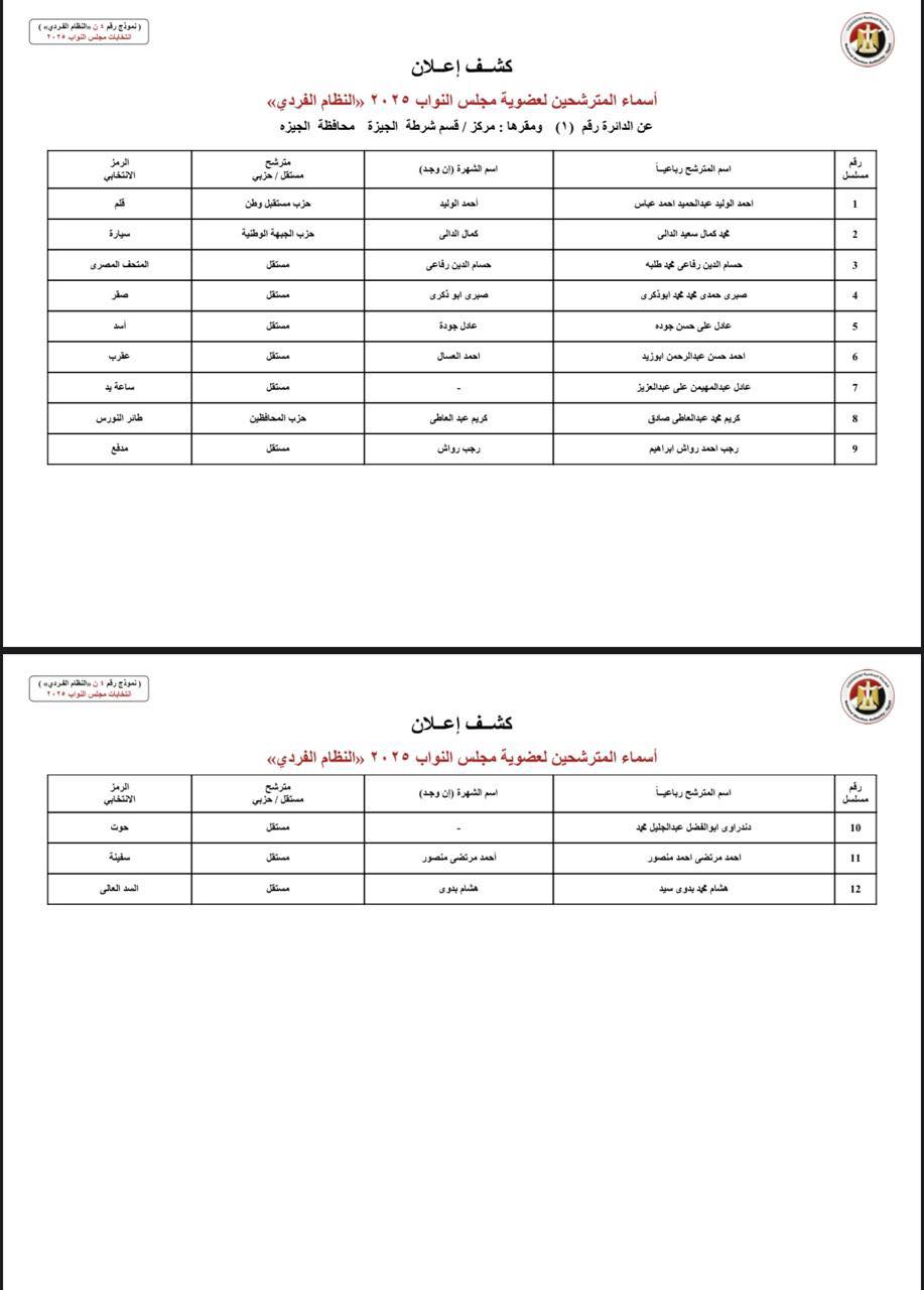ننشر أسماء المرشحين فى انتخابات النواب بمحافظة الجيزة
