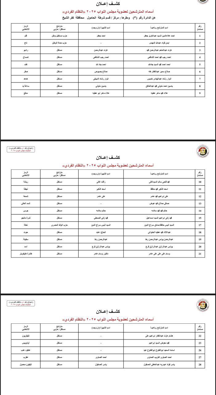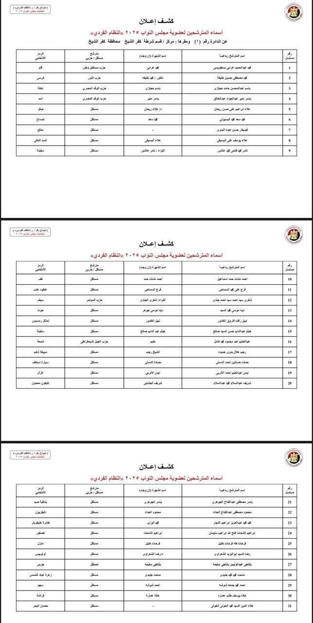 ننشر أسماء المرشحين فى انتخابات النواب بمحافظة كفر الشيخ