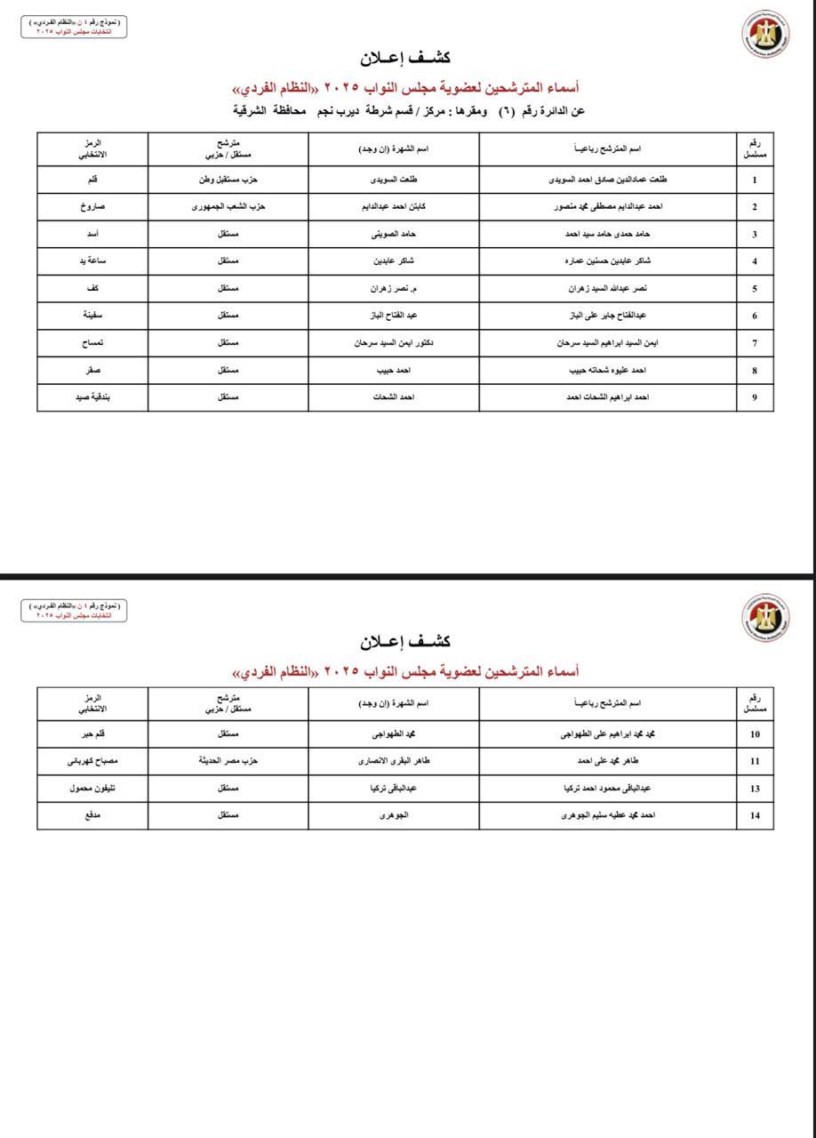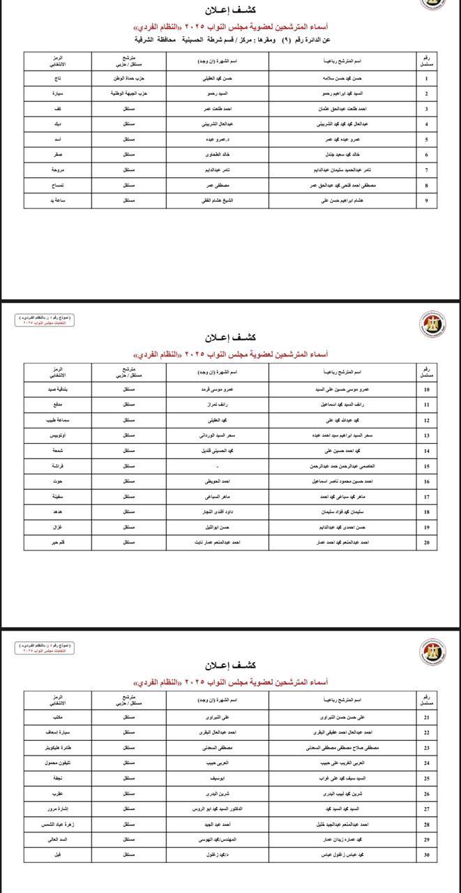 ننشر أسماء المرشحين فى انتخابات النواب بمحافظة الشرقية