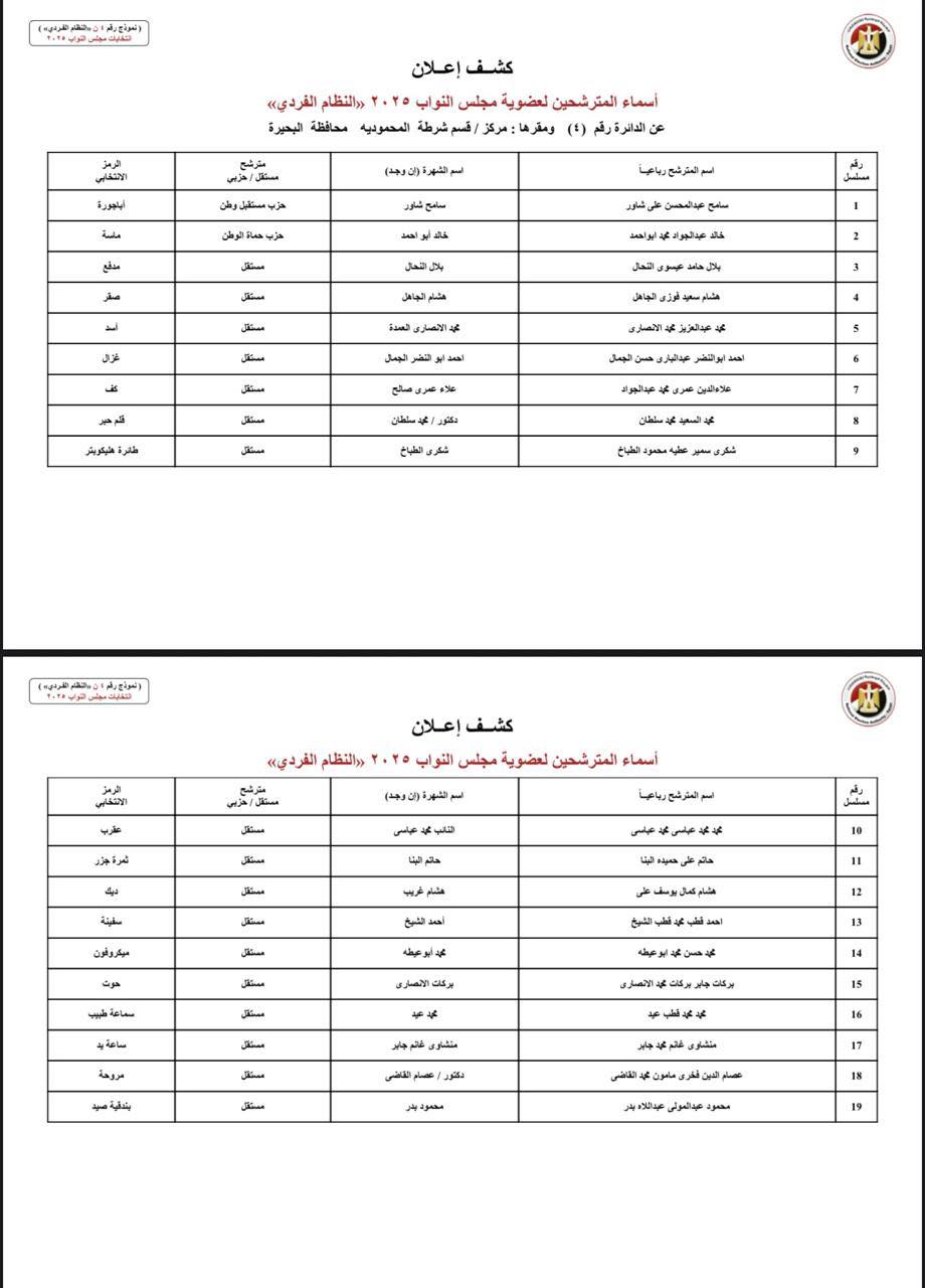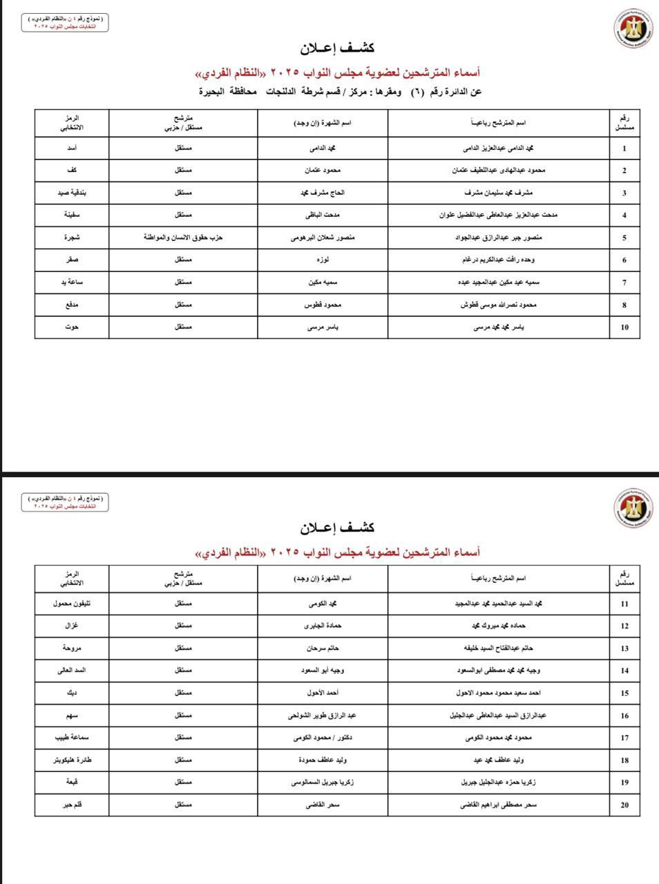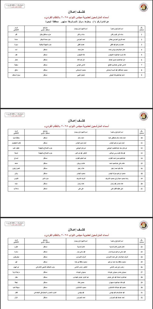 ننشر أسماء المرشحين فى انتخابات النواب بمحافظة البحيرة