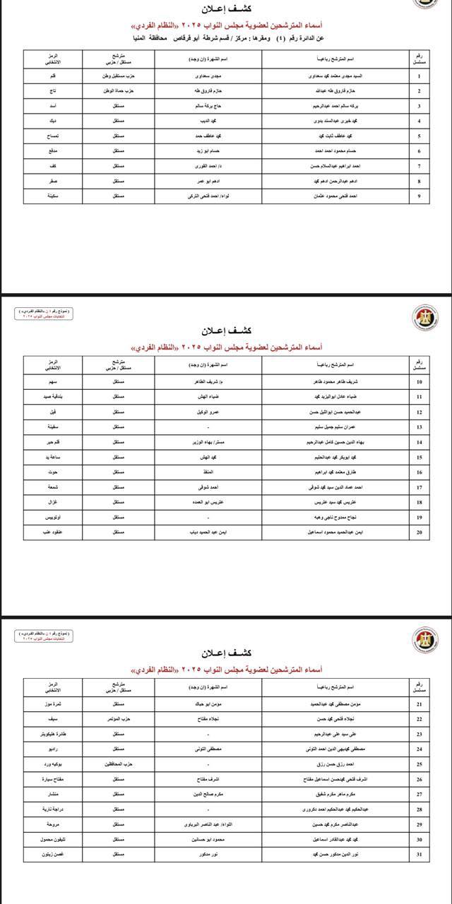 ننشر أسماء المرشحين فى انتخابات النواب بمحافظة المنيا