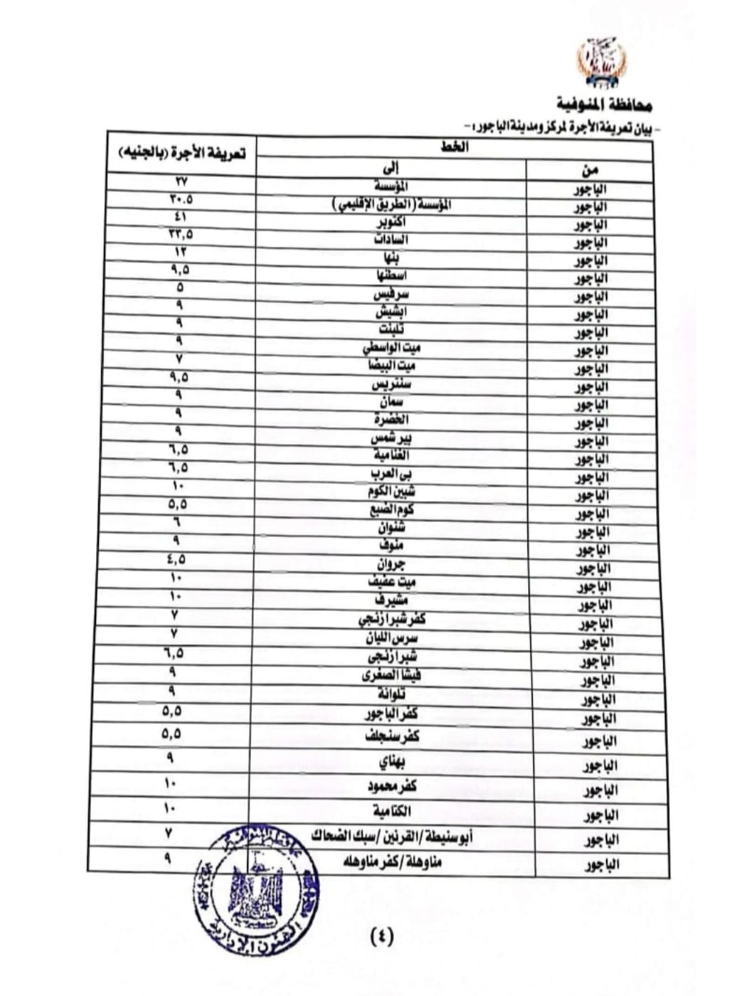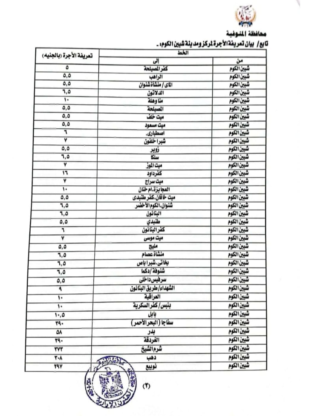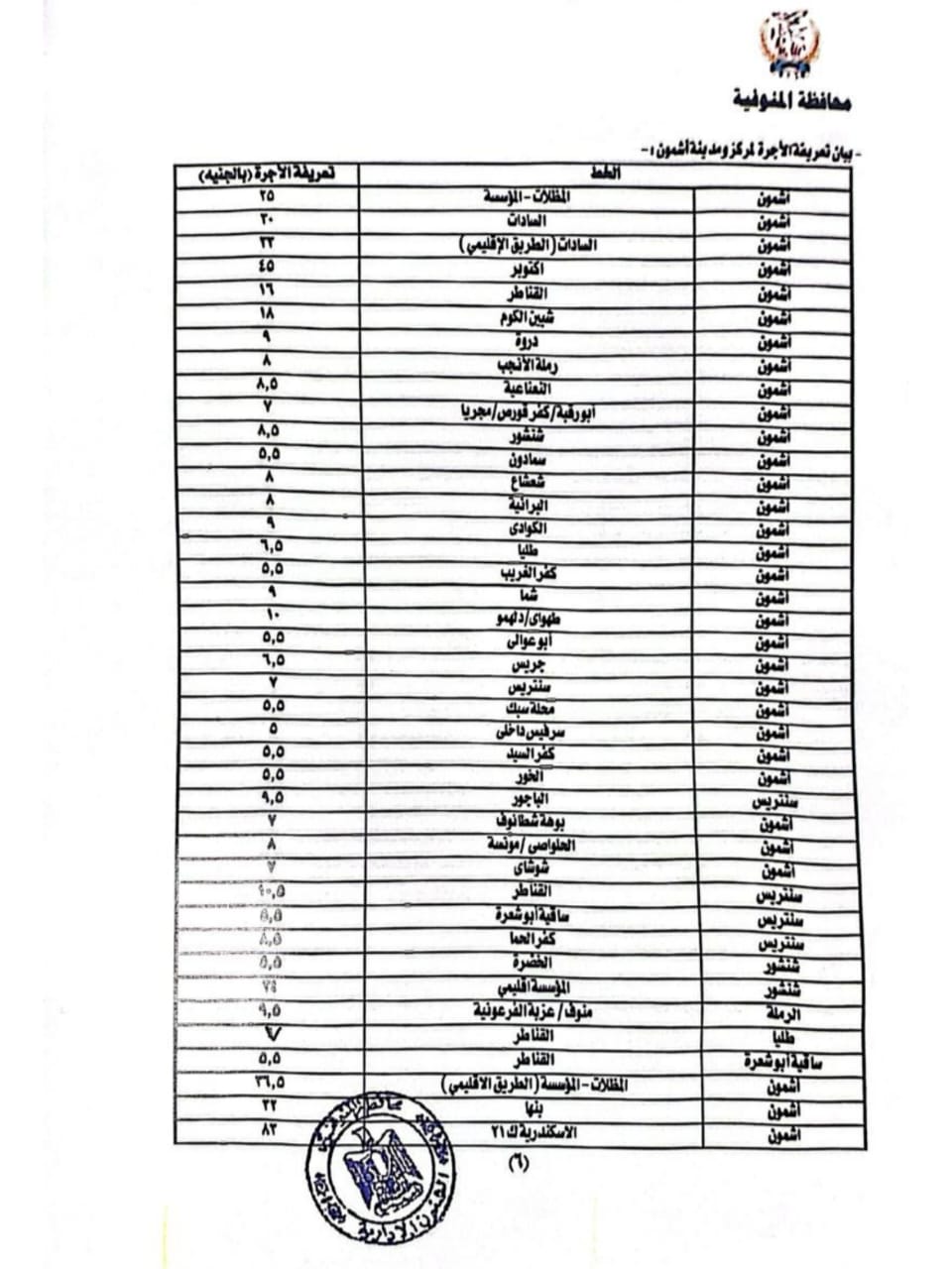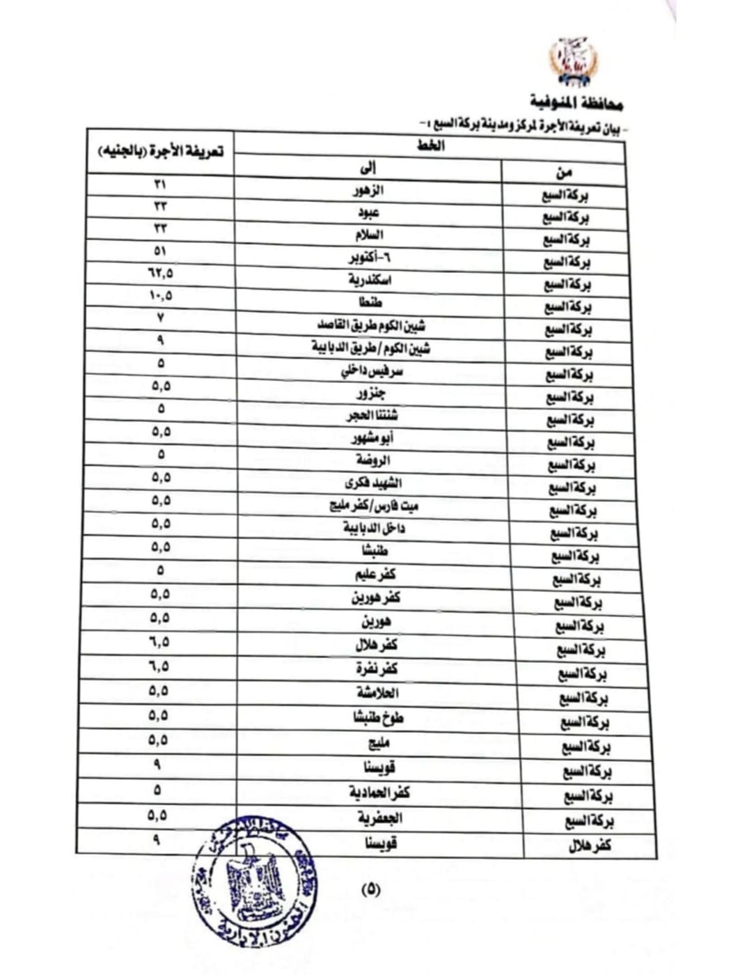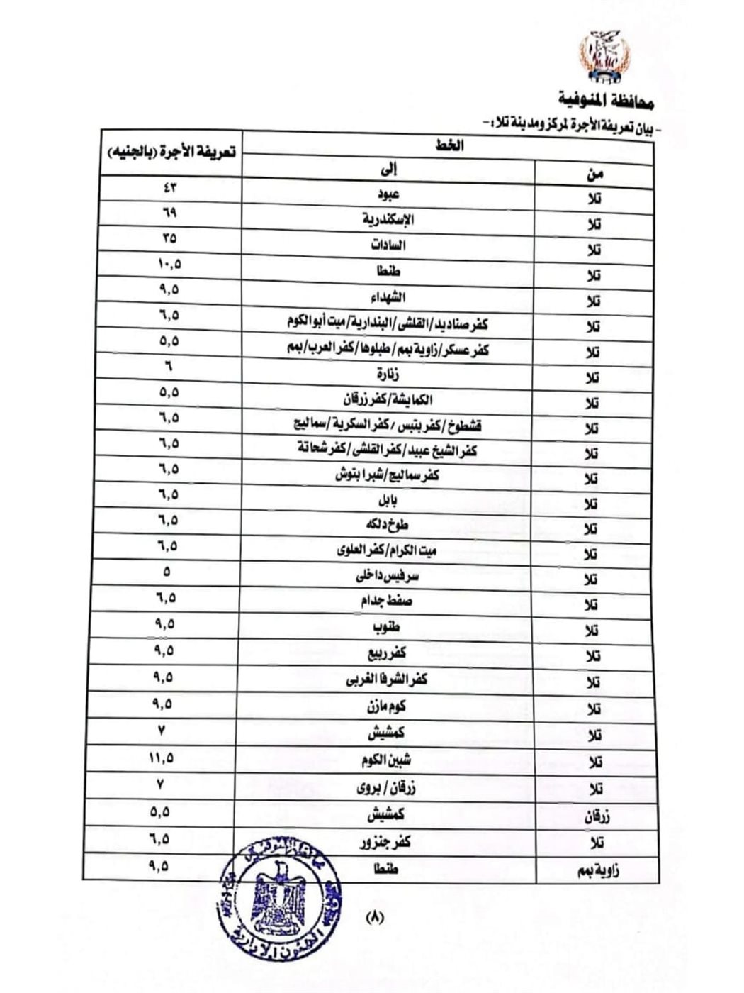 أصدر اليوم اللواء إبراهيم أبو ليمون محافظ المنوفية قرارا بشأن تعديل التعريفة الجديدة والمقررة لركوب سيارات الأجرة والسرفيس والتاكسي والتوك توك بدائرة المحافظة ، وذلك عقب قرار لجنة التسعير التلقائي للمنتجات البترولية وزيادة أسعار البنزين والسولار اعتبارا من اليوم الجمعة الموافق 16 أكتوبر 2025.