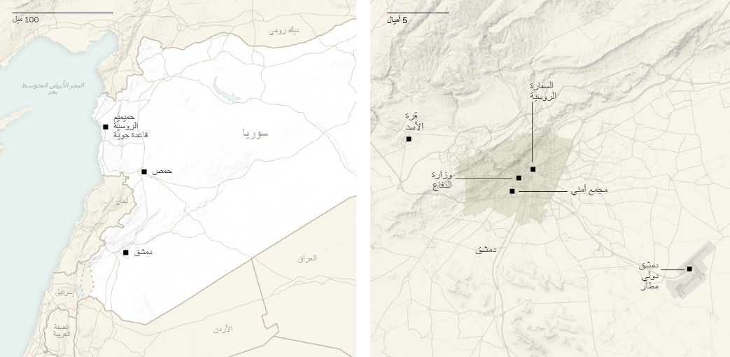 ركب الرئيس المخلوع وحاشيته طائرة نقلتهم إلى حميميم، وهي قاعدة جوية ساحلية تسيطر عليها روسيا، التي كانت داعمه الأكثر أهمية في الحرب.