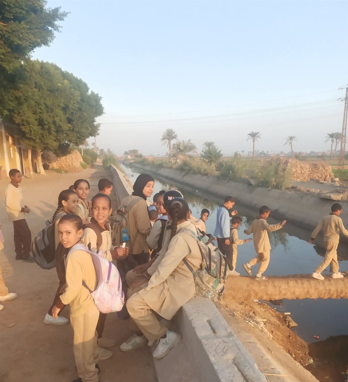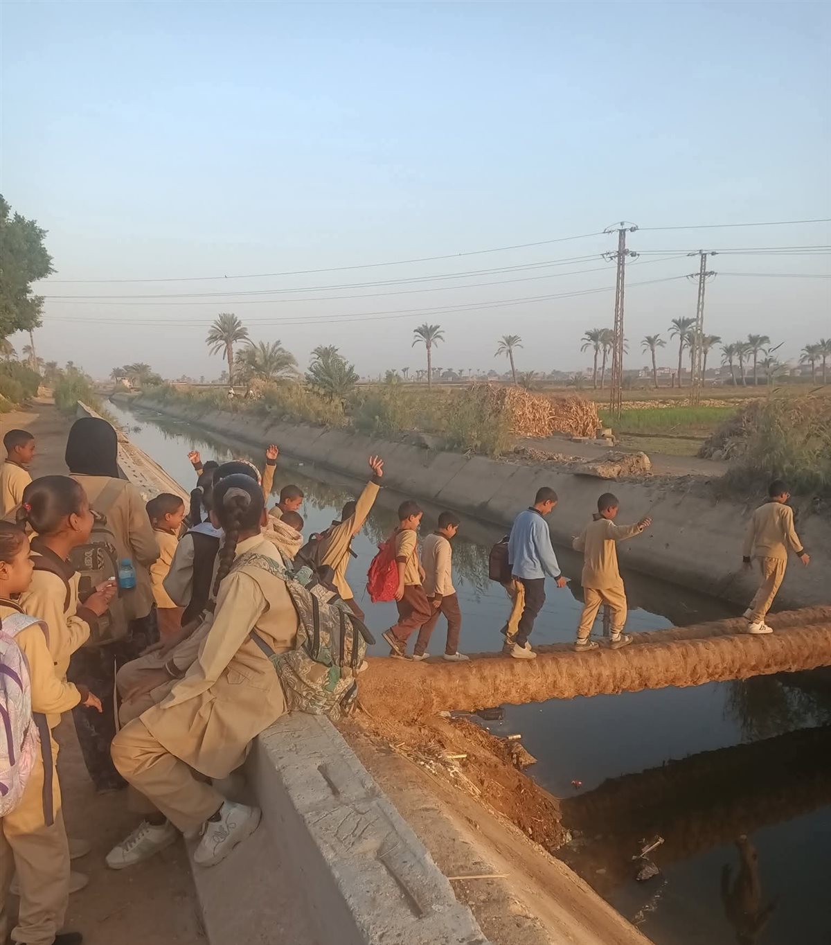 بيعدوا الترعة على جذع نخلة.. كارثة تهدد حياة تلاميذ قرية الإسكندرية بأسيوط