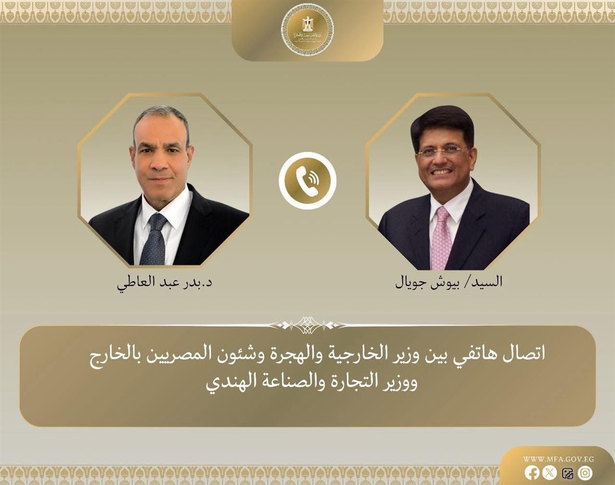 جرى اتصال هاتفي بين الدكتور بدر عبد العاطي، وزير الخارجية والهجرة وشئون المصريين بالخارج، خلال زيارته إلى نيودلهي، مع السيد بيوش جويال وزير التجارة والصناعة الهندي اليوم الجمعة 17 أكتوبر، وذلك لبحث سبل زيادة التبادل التجاري ومضاعفة الاستثمارات الهندية فى مصر.