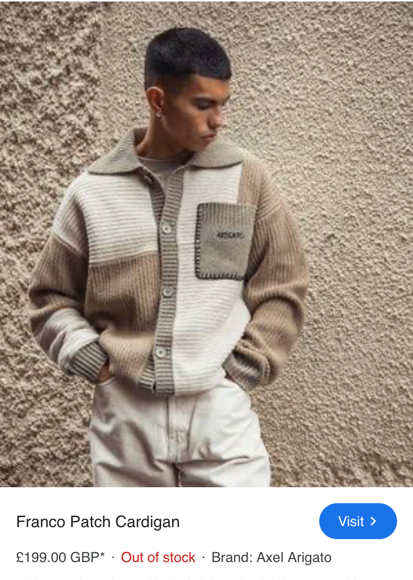 ارتدى محمد صلاح، كارديجان فرانكو بتصميم رقعات مزيج من خامة الصوف من توقيع العلامة التجارية العالمية للأزياء الجاهزة اكسل اريجاتو ويبلغ سعر إطلالته حوالي 199 يورو.