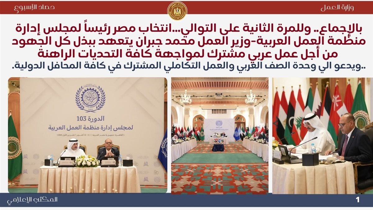 وزارة العمل في أسبوع| رئاسة عربية جديدة وتعاون أكاديمي.. وتشغيل آلاف الشباب