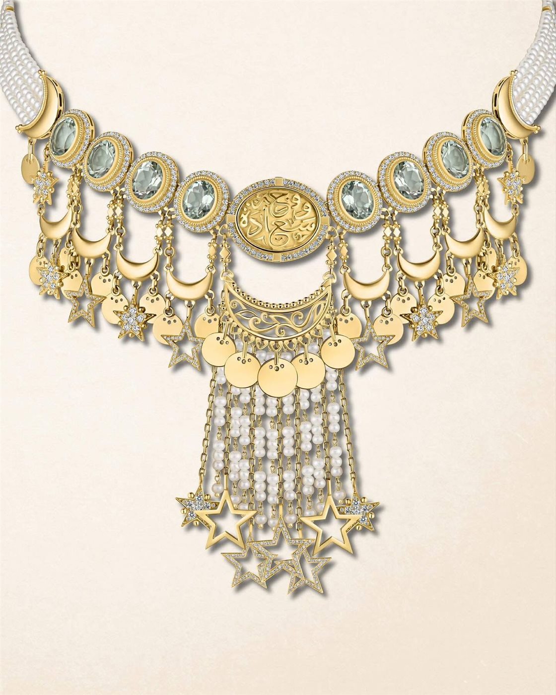 شيرين رضا بعقد شوكر مرصّع باللؤلؤ