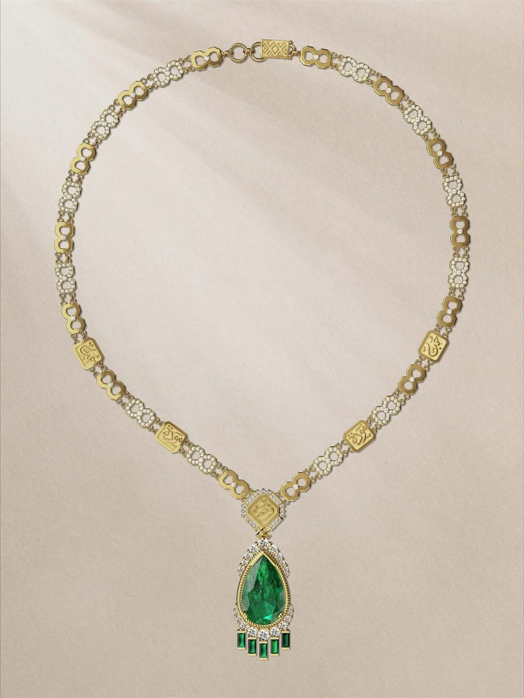 ومما زاد من أناقتها ورُقيها، تنسيق طلّتها الساحرة مع مجوهرات رائعة من حجر الزمرد الملكي من توقع المصممة المصرية العالمية، عزة فهمي.