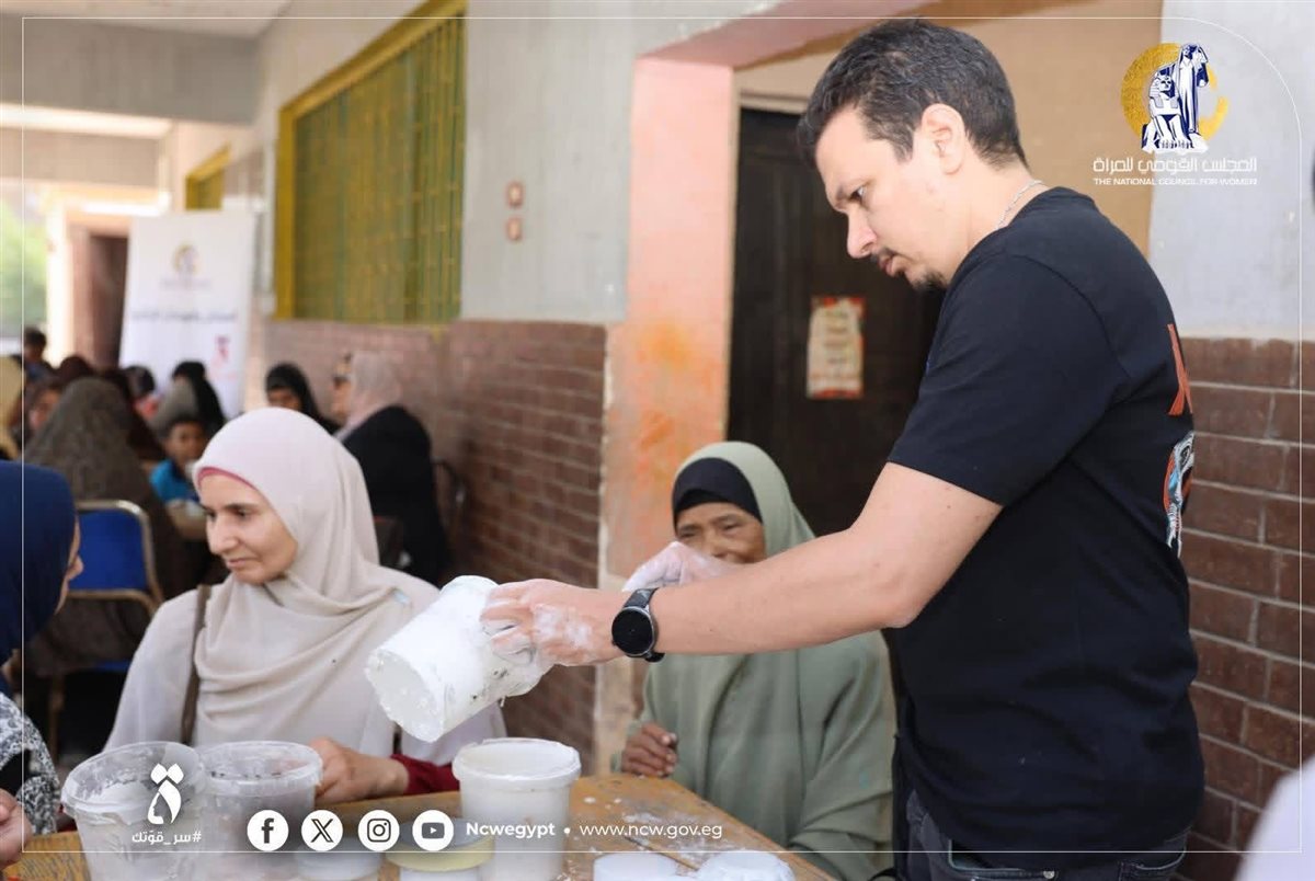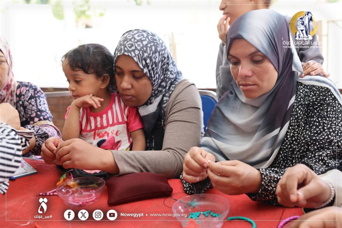 كما تم تنظيم العديد من الورش التدريبية منها ورشة الديكوباج وورش صناعة الصابون والمستحضرات الطبيعية وصنع الحلي بالخرز إلى جانب صنع الأواني بالجبس والتي تم تنظيمها ضمن تدريبات المشاغل والوحدات الإنتاجية، بالإضافة الى استخراج بطاقات الرقم القومي للسيدات إلى جانب تنظيم قافلة للكشف الطبي على السيدات شملت الكشف الأساسي على أمراض الضغط والسكر وتقديم الأدوية المجانية.