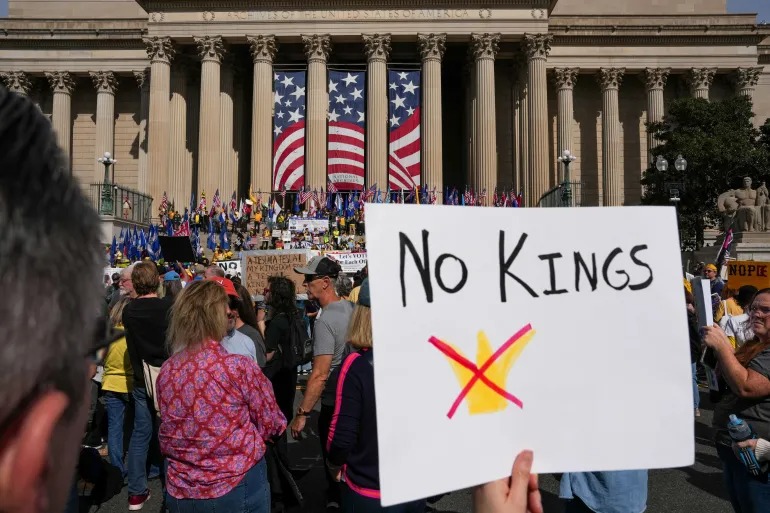 وتعد هذه التعبئة الجماهيرية الثالثة منذ عودة ترامب إلى البيت الأبيض في يناير، وتأتي على خلفية إغلاق الحكومة الذي لم يغلق البرامج والخدمات الفيدرالية فحسب، بل يختبر توازن القوى الأساسي مع مواجهة السلطة التنفيذية العدوانية للكونجرس والمحاكم بطرق يحذر المنظمون من أنها انزلاق نحو الاستبداد الأمريكي.