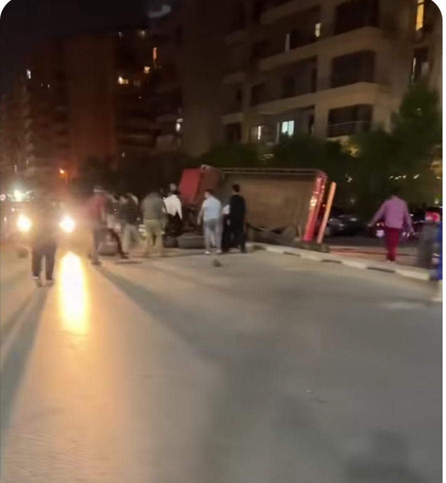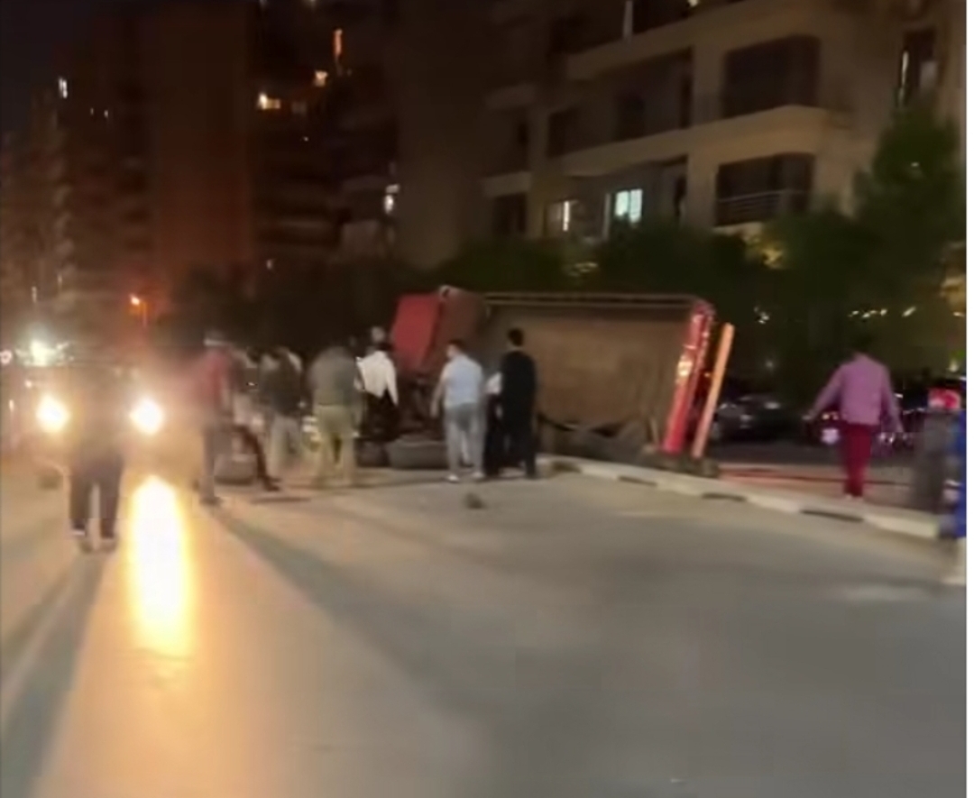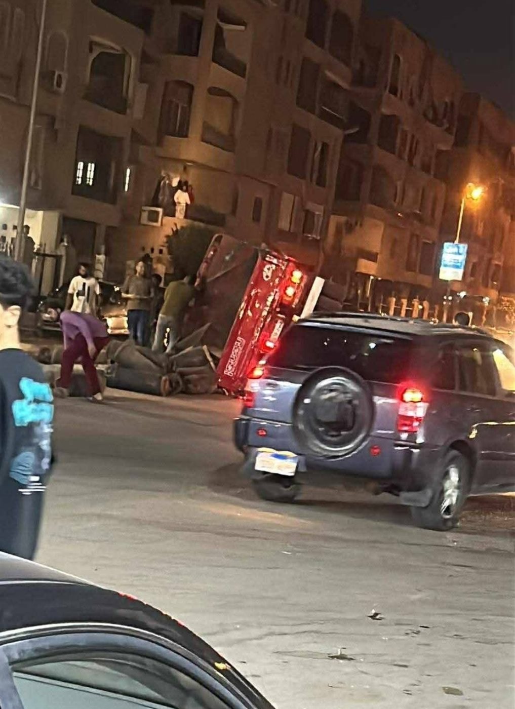 انقلاب سيارة نقل أنابيب بزهراء المعادي
