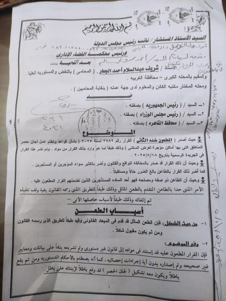 اتحاد المستأجرين: هذه الدعوى الوحيدة الصحيحة ضد قانون الإيجار القديم | مستندات