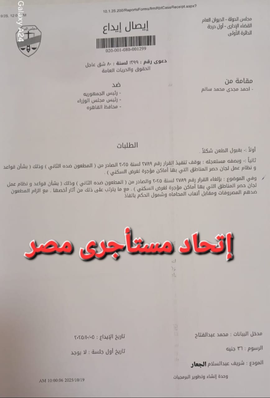اتحاد المستأجرين يكشف الدعوى الوحيدة المُقامة بإجراءات صحيحة