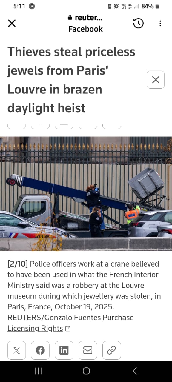تمت في 7 دقائق.. تفاصيل عملية سرقة مجوهرات متحف اللوفر