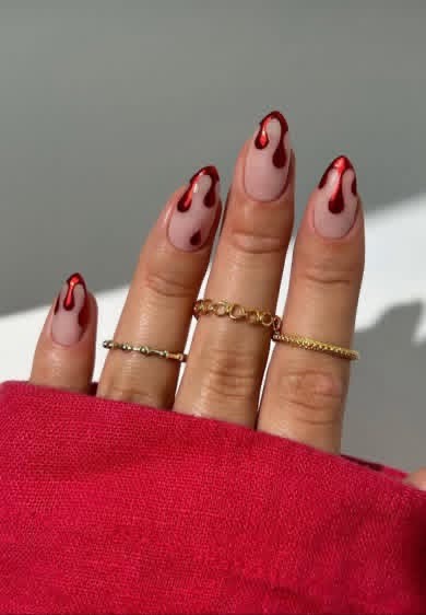 لمَن تبحث عن جرأة حقيقية ومظهر درامي، يمكن تجربة طلاء أظافر أحمر داكن مع تأثير الدم المتقطّع أو المزخرف بالدانتيل. هذا التصميم يعطي إحساسا بالغموض والإثارة، ويخلق توازناً بين الرعب والجمال. يمكن تنسيقه مع أزياء مستوحاة من مصاصي الدماء أو الشخصيات الغامضة في أفلام الرعب.