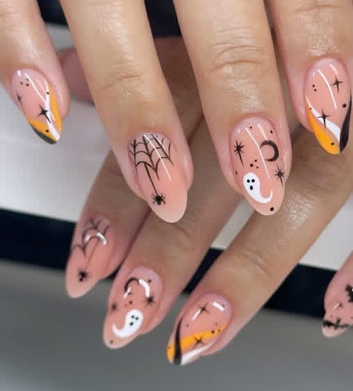 لا يمكن الحديث عن الهالويين دون اللون البرتقالي، رمز القرع الشهير. اعتمدي طلاء أظافر برتقاليا لامعا مع رسومات بسيطة مثل الوجوه المرعبة للقرع، العناكب الصغيرة، أو خيوط الشبك العنكبوتي. هذه اللمسة الفنية تضفي المرح والجرأة على مظهرك، وتعتبر مثالية للشابات اللواتي يفضلن طابعاً شبابياً ومليئاً بالحياة.