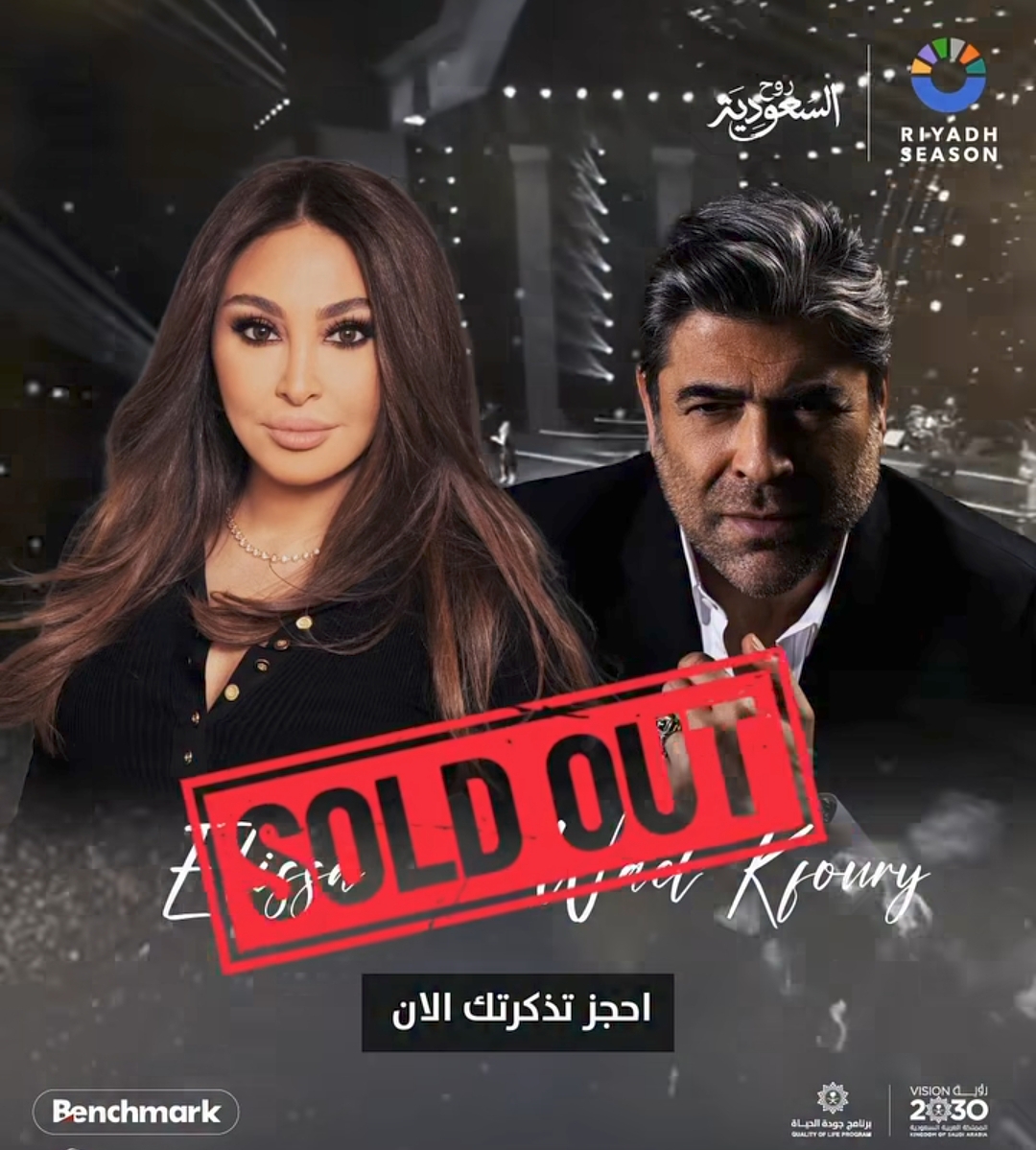 أعلنت الشركة المنظمة لحفل الفنانة إليسا والفنان وائل كفوري المرتقب في موسم الرياض عن نفاد تذاكر الحفل بالكامل.