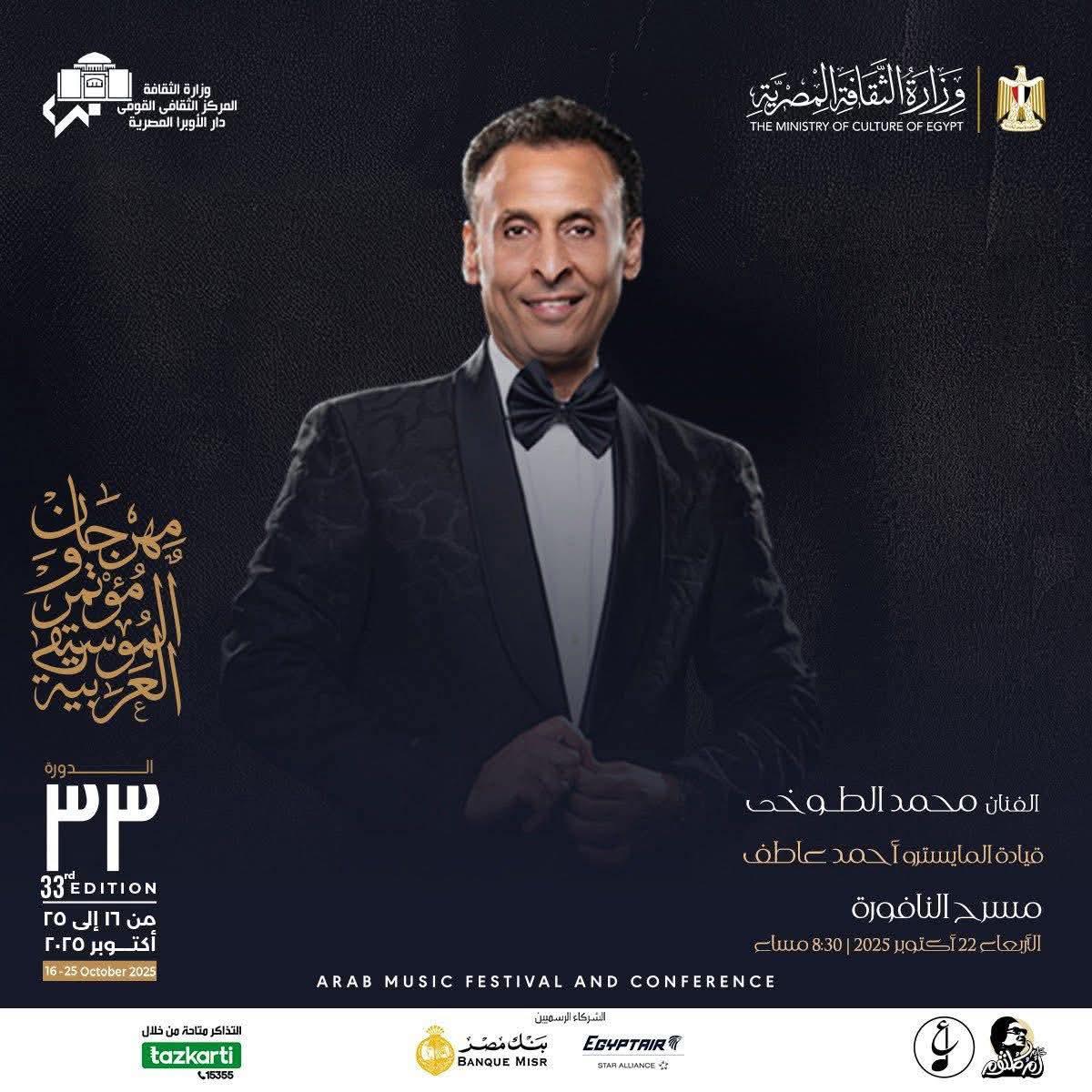 تتواصل فعاليات مهرجان ومؤتمر الموسيقى العربية 33 الذى تقيمه وزارة الثقافة عبر دار الأوبرا المصرية برئاسة الدكتور علاء عبد السلام ويديره المايسترو تامر غنيم ونائبه المايسترو الدكتور محمد الموجى بإشراف أمانى السعيد مستشار رئيس الأوبرا حيث يقام فى التاسعة مساء الأربعاء 22 اكتوبر حفلا على مسرح النافورة للنجم على الحجار بمصاحبة الفرقة الموسيقية بقيادة المايسترو أحمد عاطف يضم باقة من أعماله الغنائية الشهيرة إلى جانب مجموعة من مؤلفات عمالقة زمن الفن الجميل، ويسبقه فاصلاً غنائياً لنجوم الاوبرا نهى حافظ ، نهاد فتحى ، رحاب عمر ومحمد الطوخى .