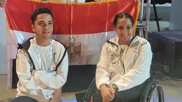 وحمل علم مصر في حفل الافتتاح لاعبا المنتخب الوطني آية الله أيمن ومحمد السيد ورافقهم محمد فتحي المدير الفني للمنتخب.