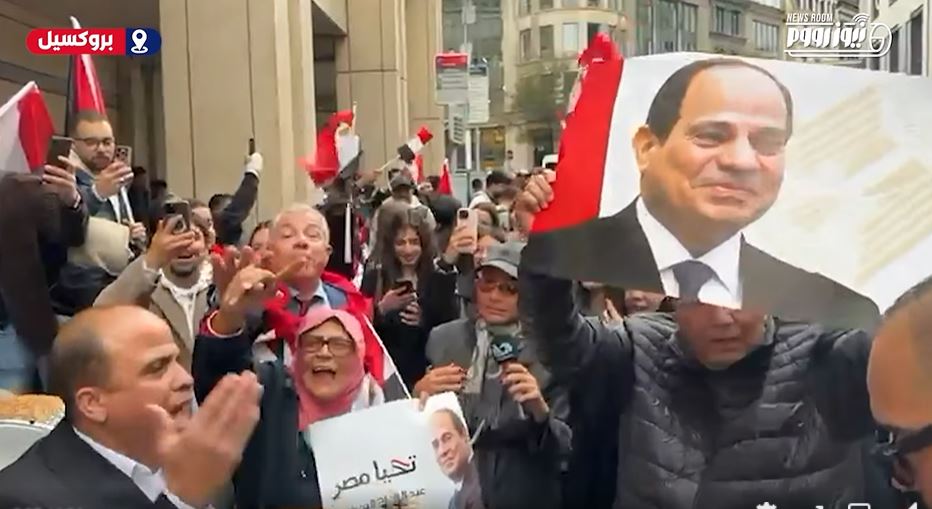 الجالية المصرية تحتفي بالرئيس في شوارع بروكسل