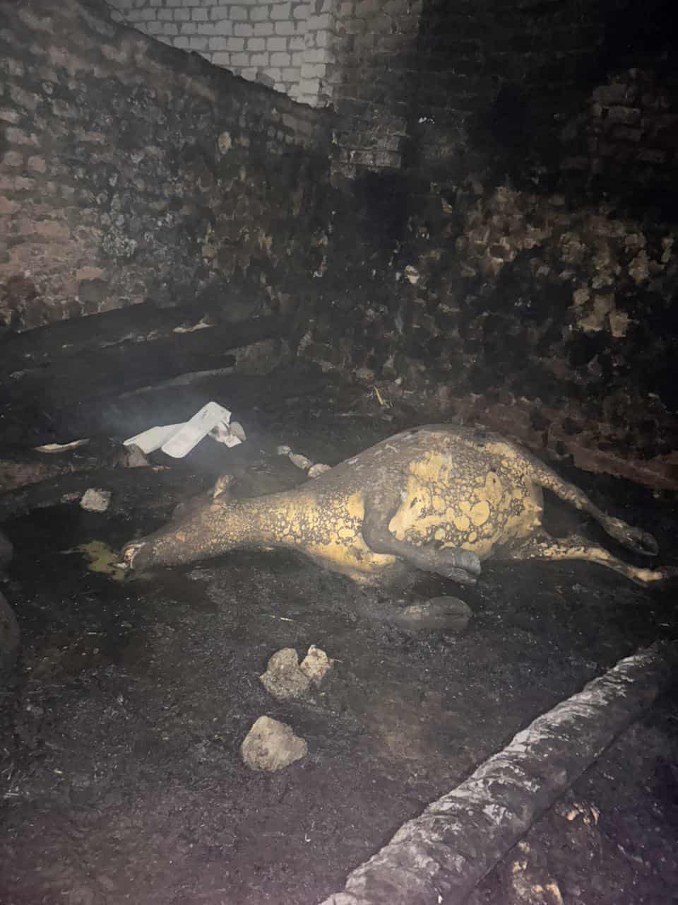 تم الدفع بسيارات الإطفاء إلى مكان الحريق وتبين بعد الفحص حريق في حوش ماشية ونفوق بقرة وجاموسة و3 أغنام وإصابة سعدالدين.ك، يبلغ من العمر 70 عامًا بسبب الحريق.