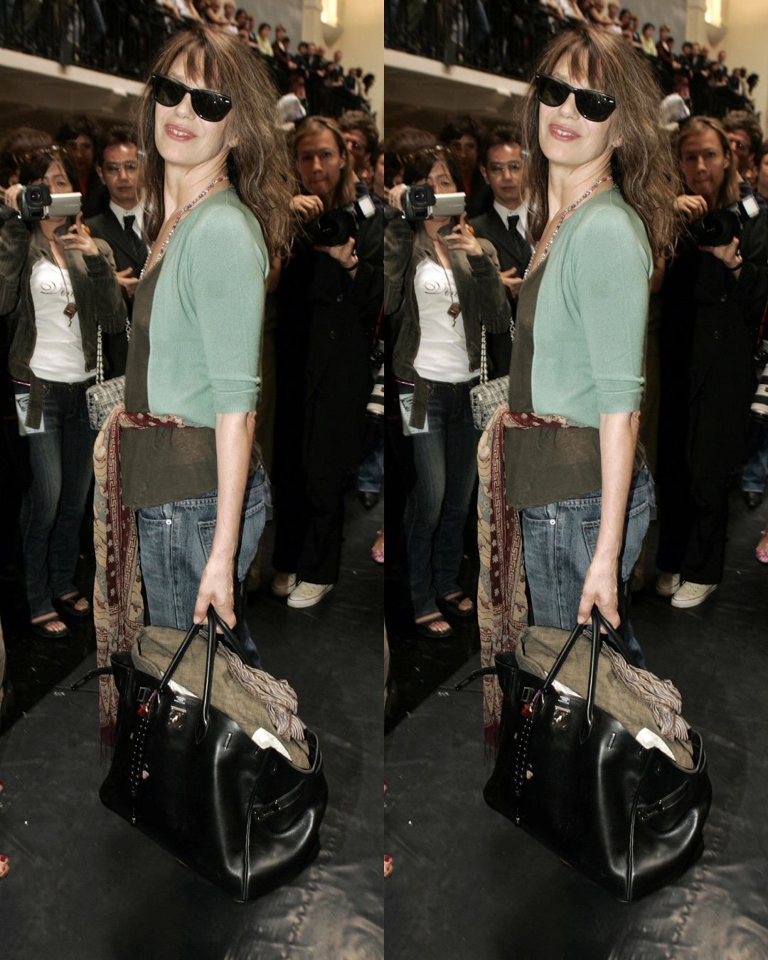 كانت حقيبة "لو بيركين فوياجور" حقيبة بيركين اليومية من عام 2003 إلى عام 2007، عندما بيعت في مزاد. وظلت الحقيبة ضمن مجموعة خاصة منذ ذلك الحين، وكجزء من تحضيرها لمزاد عام 2007، كتبت الممثلة ملاحظاتها بحبر فضيّ.