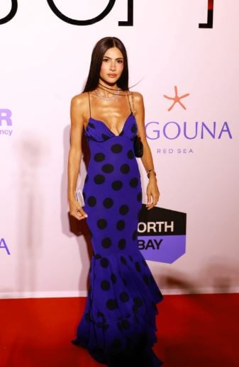 خطفت الفنانة هدى المفتي الأنظار بإطلالة أنيقة بفستان أزرق بنقشات دائرية سوداء من ZARA، يبلغ سعره 75 دولارًا فقط (حوالي 3500 جنيه مصري)، تميز الفستان بتصميمه الإسباني مع كرانيش أنثوية في الأسفل، ما منحها مظهرًا أشبه براقصات الفلامنكو.