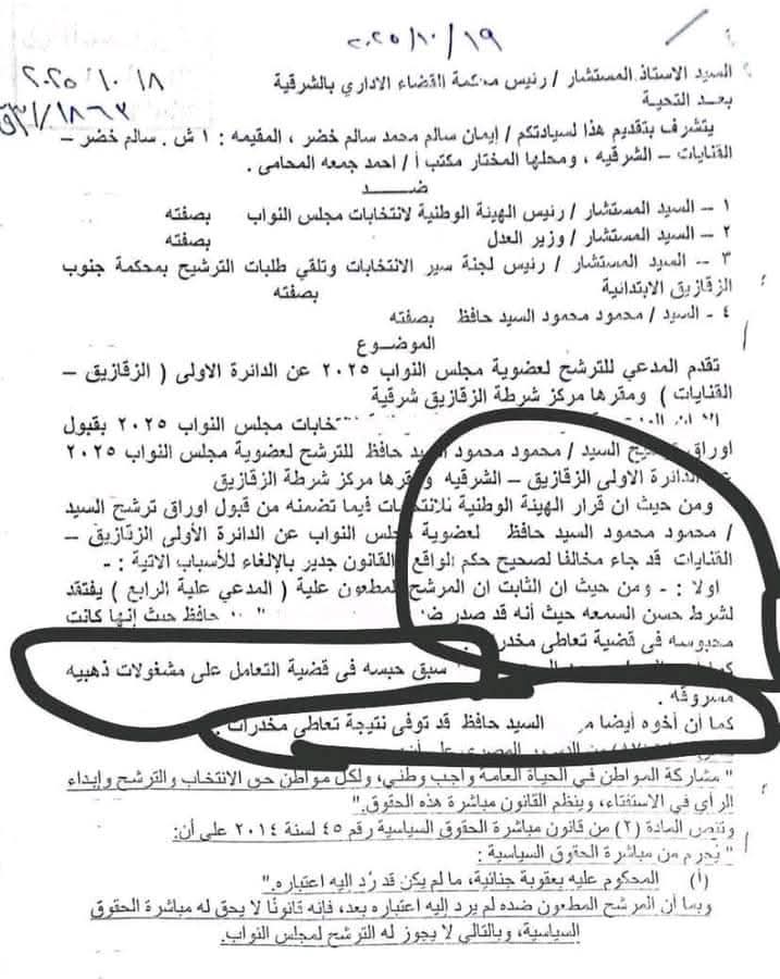 وقبل ساعات قليلة من حسم القضاء الإدارى لمصير الطعون، نلقى الضوء على ابرز ما تم تقديمه ضد مرشحى دوائر محافظة الشرقية.