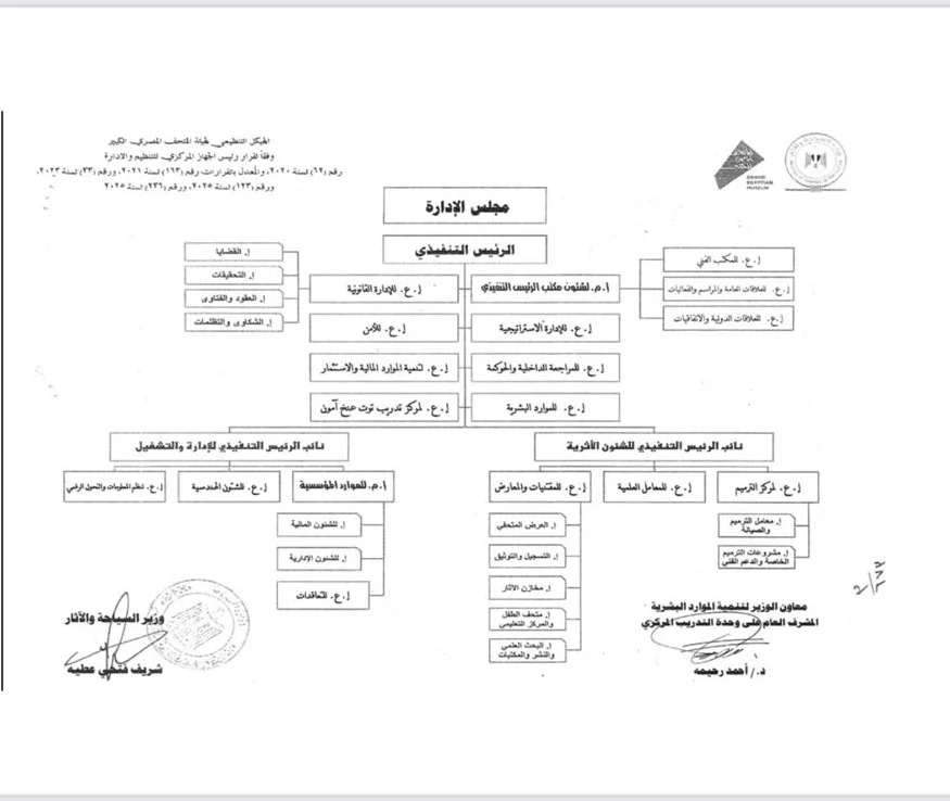 ويأتي هذا القرار استكمالًا للجهود الرامية إلى تنظيم العمل داخل واحدة من أهم المؤسسات الثقافية والحضارية في العالم، بما يواكب المكانة الدولية للمتحف المصري الكبير كمشروع وطني يمثل واجهة مصر التراثية أمام العالم.