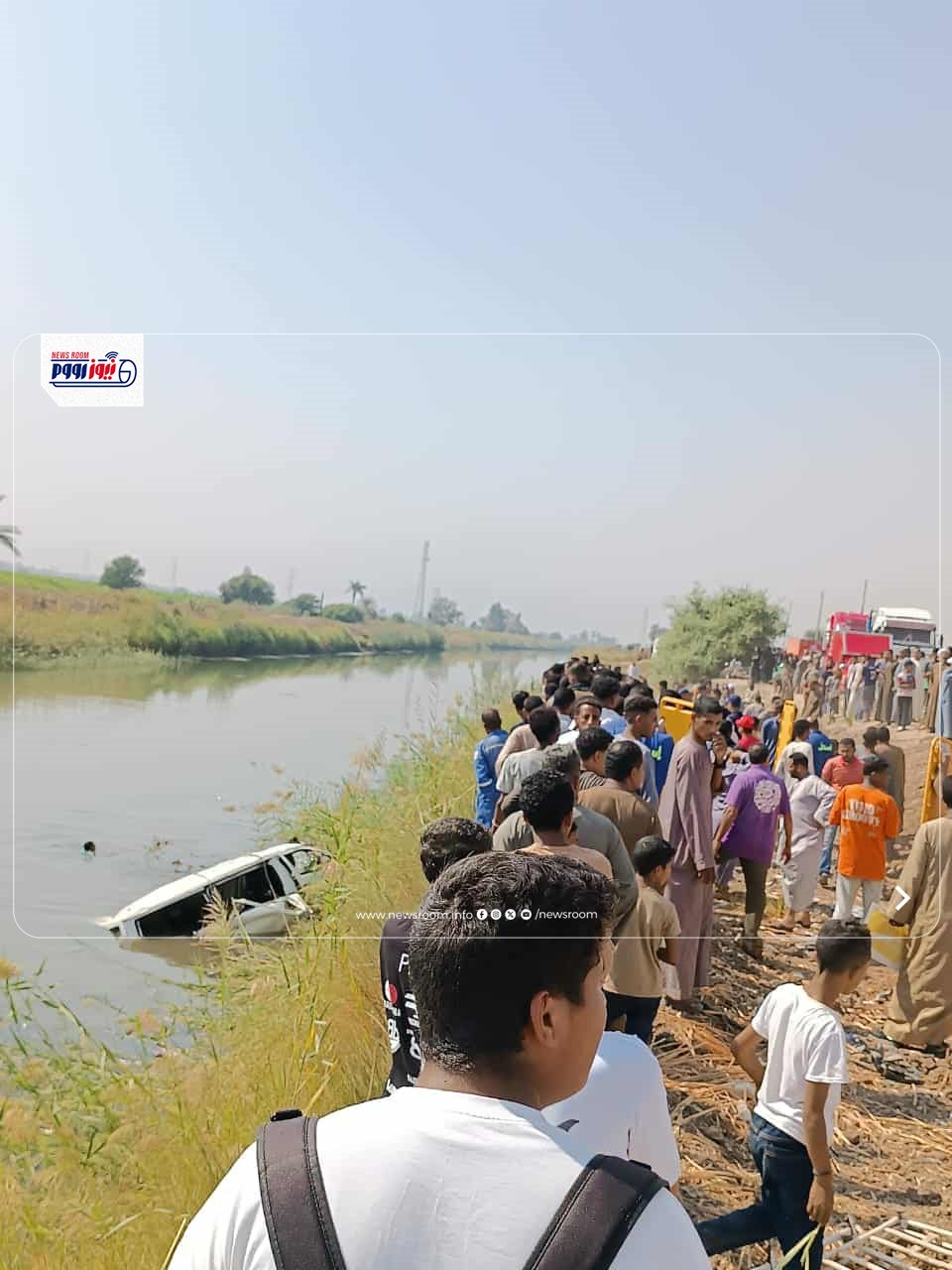 أول صور لحادث انقلاب سيارة ميكروباص داخل ترعة في قنا