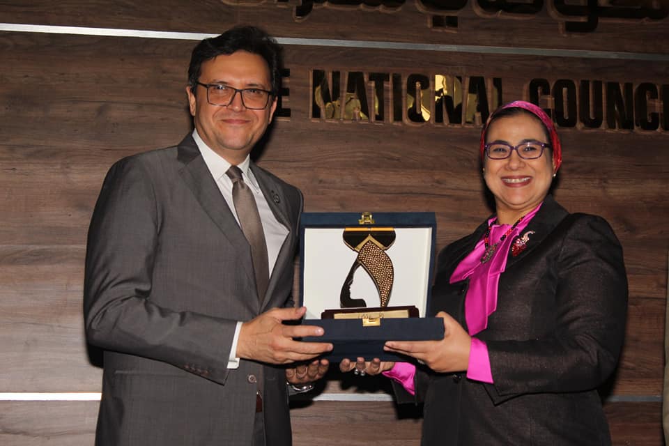 من جانبه، حرصت المستشارة "أمل عمار"، رئيسة المجلس القومي للمرأة، على إهداء درع المجلس إلى الدكتور "أحمد فؤاد هنو"، وزير الثقافة، تقديرًا لجهوده البناءة لإثراء المشهد الثقافي، إلى جانب مجموعة من الهدايا التذكارية اليدوية التي تم تنفيذها داخل ورش المجلس، تعبيرًا عن التعاون المثمر بين الجانبين في دعم الفنون والتراث المصري الأصيل.