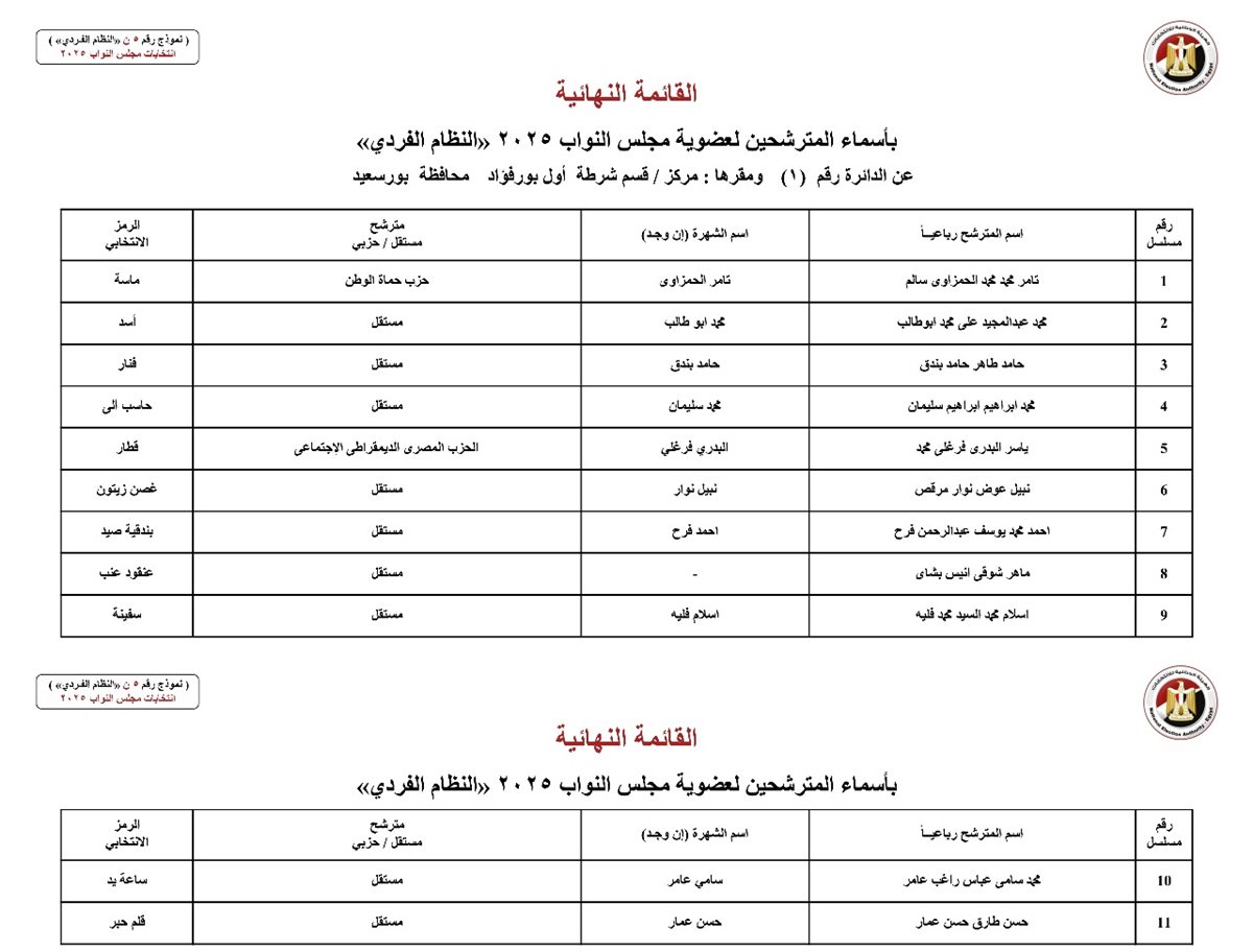 الكشف عن أسماء المرشحين الفرديين بانتخابات البرلمان 2025 بمحافظة بورسعيد