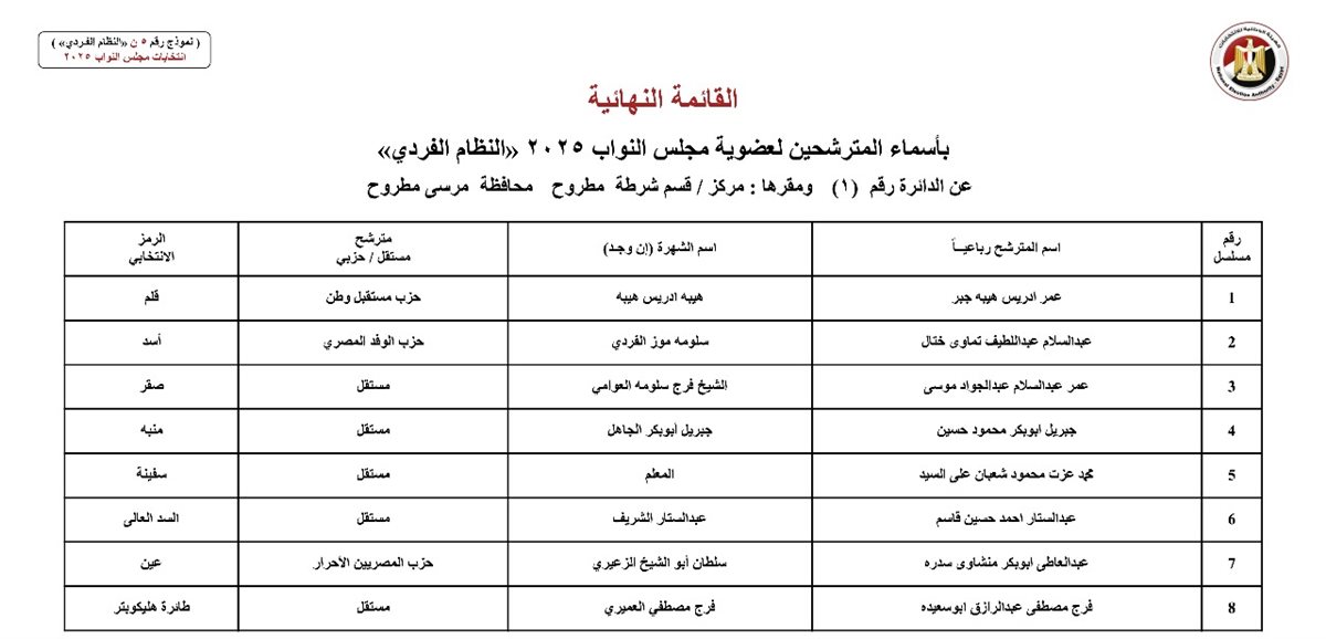 الكشف عن مرشحي البرلمان 2025 بالنظام الفردي يشعل الأجواء بمرسى مطروح